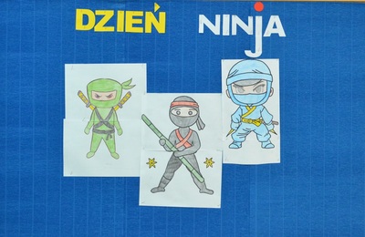 W tym dniu wszystkie dzieci ubrały się na czarno a na głowie miały papierowe białe opaski z własnym imieniem (stylizacja na ninje). Głównym celem tego dnia było zachęcenie dzieci do aktywności ruchowej, integrowanie się grupy oraz wiary we własne siły i możliwości. Ćwiczyły uderzając...