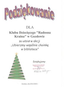 W dniu 24.12.2020r. ( Wigilia) Klub Dziecięcy „Radosna Kraina”