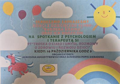 Dziś w naszym Klubie Dziecięcym ponownie gościliśmy Panie z Poradni Psychologiczno-Pedagogicznej w Sierpcu. Tym razem w zajęciach uczestniczyły nie tylko dzieci, ale również ich rodzice. Wspólnie braliśmy udział w ciekawych aktywnościach, zabawach i rozmowach, które sprzyjały integracji....