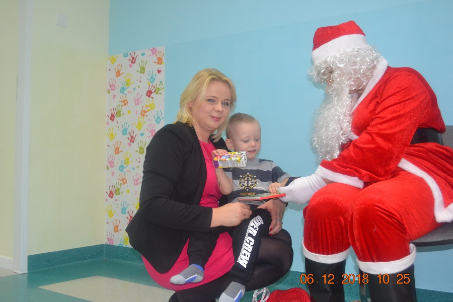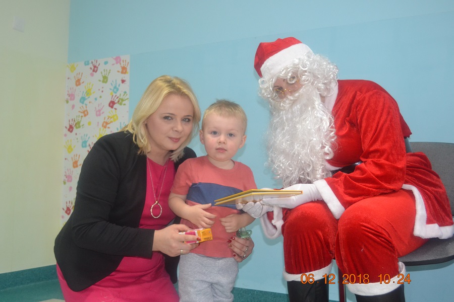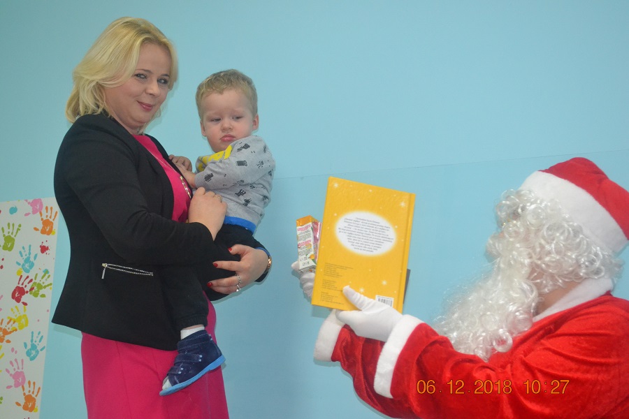 Święty Mikołaj lubi odwiedzać dzieci w każdym miejscu na całym świecie. 6 grudnia z workiem pełnym prezentów przyjechał również do naszego klubiku. Już od rana dzieci nadsłuchiwały dźwięku dzwoneczków, które słychać było już z daleka i świadczyło to o tym, że do klubiku zbliża się nikt inny, jak Święty Mikołaj we własnej osobie. Maluszki były bardzo szczęśliwe, rozpromienione, a kiedy znalazły się blisko św. Mikołaja – troszkę zawstydzone. Oprócz pełnego prezentów worka św. Mikołaj przywiózł ze sobą dużo uśmiechu. Rozmawiał z dziećmi, zachęcał ich, aby były grzeczne, słuchały rodziców i cioć w klubiku. Na zakończenie Święty Mikołaj wszystkim maluszkom osobiście wręczał upominki, a w nich – dla każdego coś dobrego! Oczekiwana cały rok wizyta św. Mikołaja minęła w bardzo miłej atmosferze i przyniosła naszym podopiecznym wiele radości. Dzień ten na długo pozostanie w pamięci wszystkich maluchów, a niektórzy z nich już od jutra nie będą mogli doczekać się kolejnej Jego wizyty.