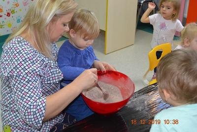 Święta bez pierniczków to Święta stracone;) Kierując się tym przesłaniem nasze maluchy postanowiły zadośćuczynić tej tradycji. W ramach przygotowań do Świąt Bożego Narodzenia ciocie wraz z dziećmi zorganizowały wspólne pieczenie świątecznych pierniczków. Najpierw dzieci przygotowały ciasto, które zostało odłożone do lodówki, żeby następnego dnia wyczarować pyszne pierniczki.