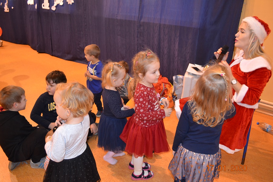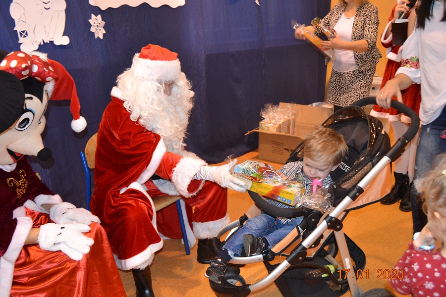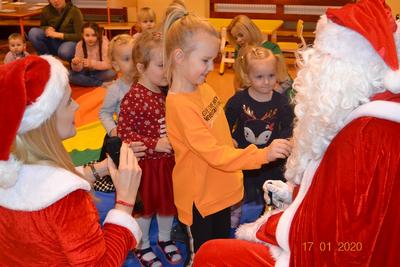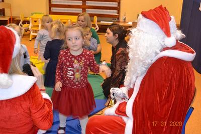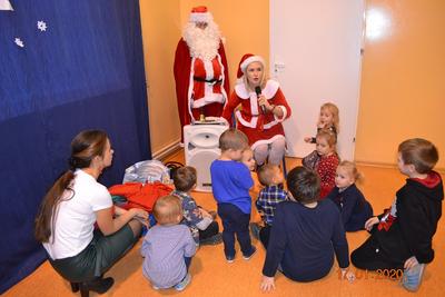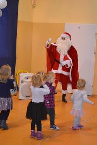 Największą atrakcją tego dnia było spotkanie z Mikołajem. Maluchy były bardzo szczęśliwe, rozpromienione, a kiedy znalazły się blisko św. Mikołaja – troszkę zawstydzone. Oprócz pełnego prezentów worka św. Mikołaj przywiózł ze sobą dużo uśmiechu. Rozmawiał z dziećmi, zachęcał ich, aby były grzeczne, słuchały rodziców i opiekunek w Klubiku. Na zakończenie Święty Mikołaj wszystkim dzieciom osobiście wręczał duże paczki, a w nich – dla każdego coś dobrego! Za prezenty dzieciaki odwdzięczyły się piękną zabawą w towarzystwie zaprzyjaźnionych animatorów BAWIDEŁKO. Oczekiwana cały rok wizyta św. Mikołaja minęła w bardzo miłej atmosferze i przyniosła naszym najmłodszym wiele radości. Dzień ten na długo pozostanie w pamięci wszystkich klubowiczów, a niektórzy z nich już od jutra nie będą mogli doczekać się kolejnej Jego wizyty.