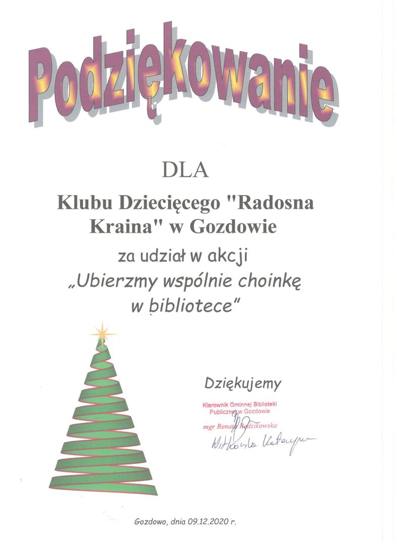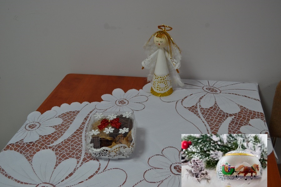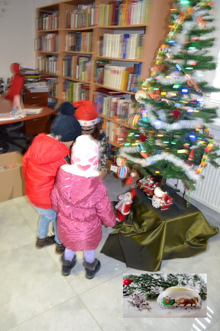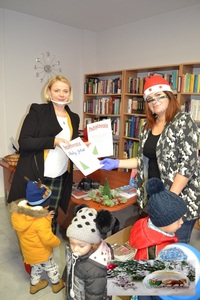 W dniu 9 grudnia udaliśmy się do biblioteki, żeby przekazać ozdoby, które wspólnie wykonaliśmy w klubiku. Pani Renata była zachwycona naszymi małymi artystami, a nasze ozdoby zrobiły „furrorę”. Każde dziecko otrzymało dyplom za uczestnictwo oraz słodki upominek, za które bardzo gorąco dziękujemy. Dzieci na ręce pani kierownik biblioteki przekazały słodki upominek w postaci również własnoręcznie wykonanych pierniczków.
