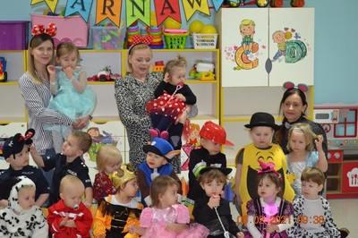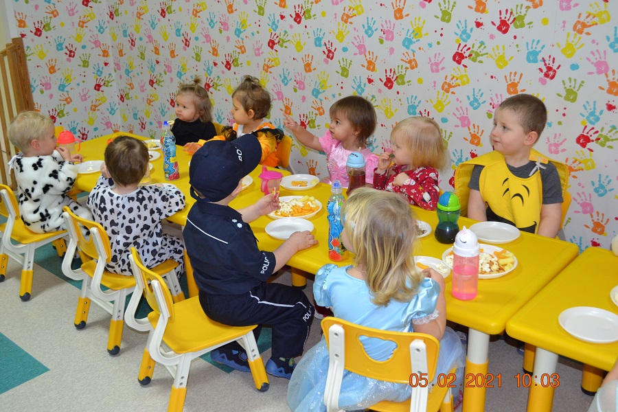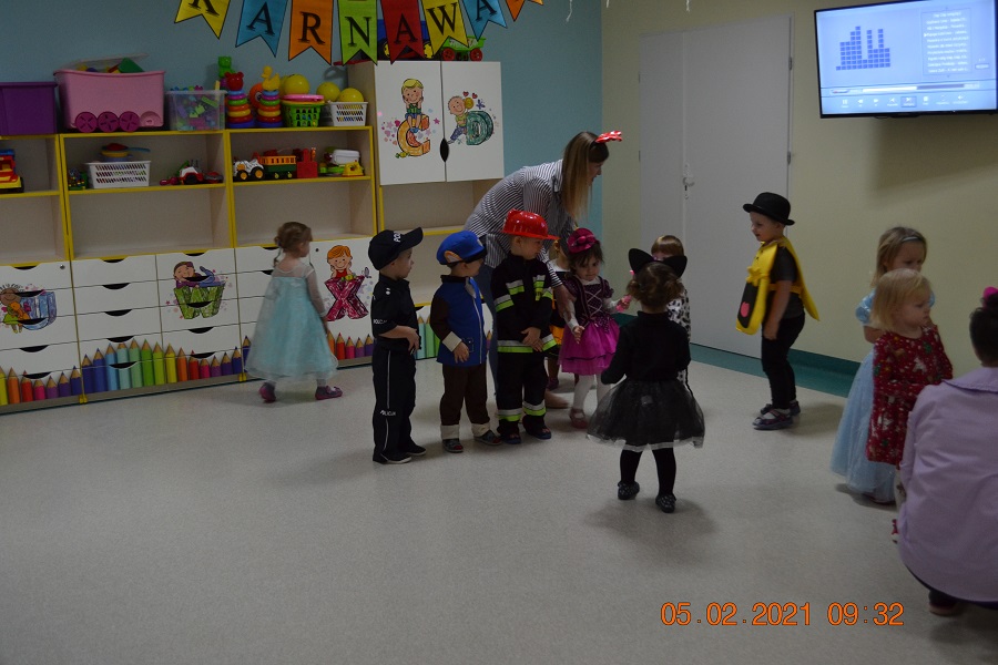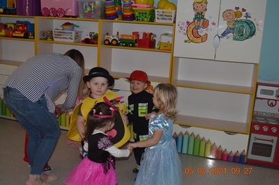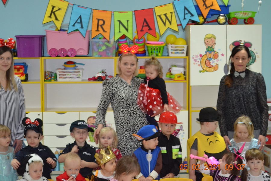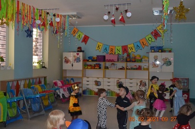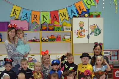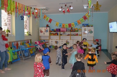 Karnawał to miła tradycja przepełniona muzyką i zabawą, gdzie ważnym elementem tego okresu są bale karnawałowe. Bal karnawałowy dla naszych najmłodszych to dzień niezwykły, często wyczekiwany przez wiele tygodni. Jest atrakcją bardzo lubianą przez dzieci, dostarczającą im wielu przeżyć i radości. Tak też było w klubiku, w dniu 5.02.2021r. odbył się wielki bal. Tego dnia już od rana w klubiku pojawiały się dzieci przebrane za kolorowe postacie. Dzieci przebrane były za bohaterów znanych bajek, można było spotkać wróżki, królewny, dalmatyńczyki, policjantów, strażaków, Myszki Mini, Chase itp. Wystrój sali wprowadził w radosny nastrój oraz zachęcał wszystkich do wesołej zabawy. Dzieci świetnie się bawiły uczestnicząc we wspaniałych zabawach. Na sali podczas pląsów robiło się kolorowo, wszyscy bawili się wesoło, uśmiech nie znikał z twarzy mimo chwilowego zmęczenia. Po przerwie na słodki poczęstunek, muzyka znowu porwała wszystkich do tańca. Kiedy czas zabawy dobiegł końca dzieci z żalem opuszczały salę balową. Wspólna zabawa przyniosła wiele radości naszym maluszkom, a to było głównym celem tego balu. Dziękujemy dzieciom i rodzicom za zaangażowanie w przygotowanie pięknych balowych strojów.