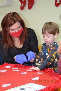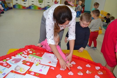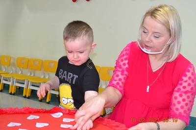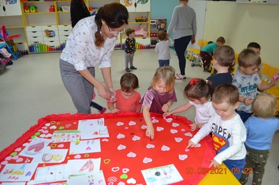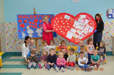 Publicznego Przedszkola im. Jana Pawła II w Gozdowie wspólnie wykonaliśmy przepiękną „Walentynkę”, która następnie została przekazana na ręce Pana Wójta Gminy – Dariusza Kalkowskiego. Serce zostało udekorowane przez nasze małe serduszka w podziękowaniu za wspieranie i pomoc naszych placówek. Dzieci przygotowały również walentynkowe ciasteczka, które następnie były dekorowane czerwonym lukrem. Oprócz pięknej Walentynki został nagrany filmik z udziałem dzieci z Klubiku Dziecięcego z okazji tego święta. Było to bardzo miłe i ciekawe zadanie do wykonania, które nasze Pociechy wykonały na medal. Na koniec każde dziecko otrzymało lizaczkowe serduszko.