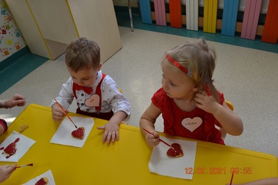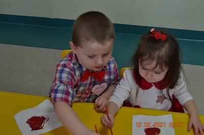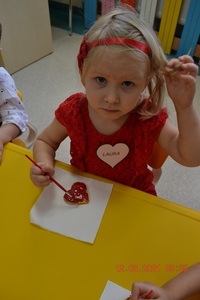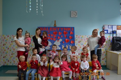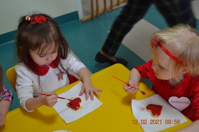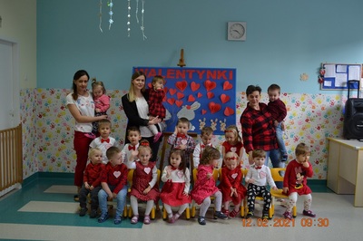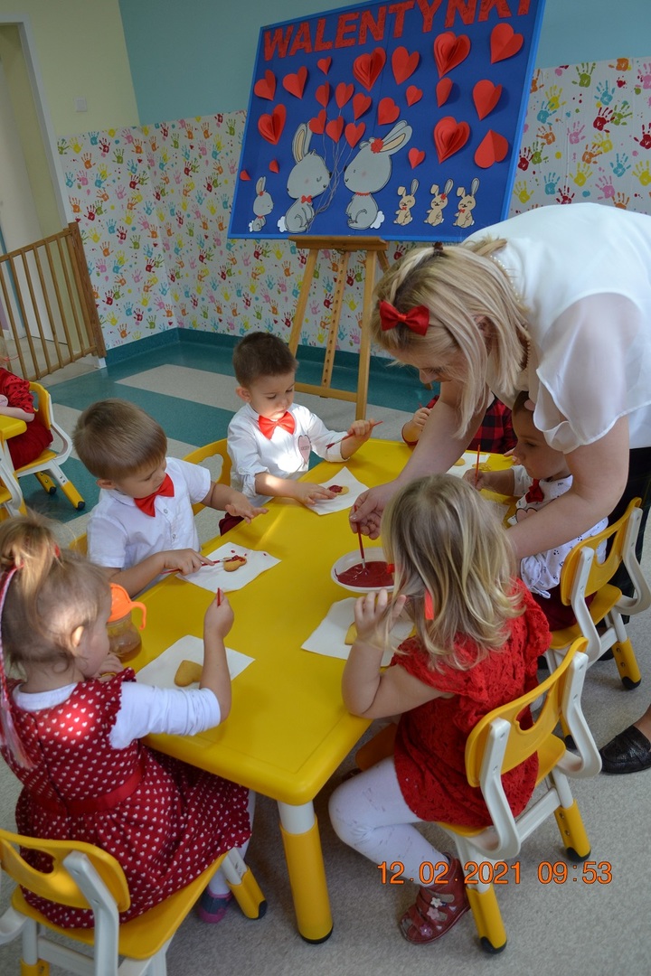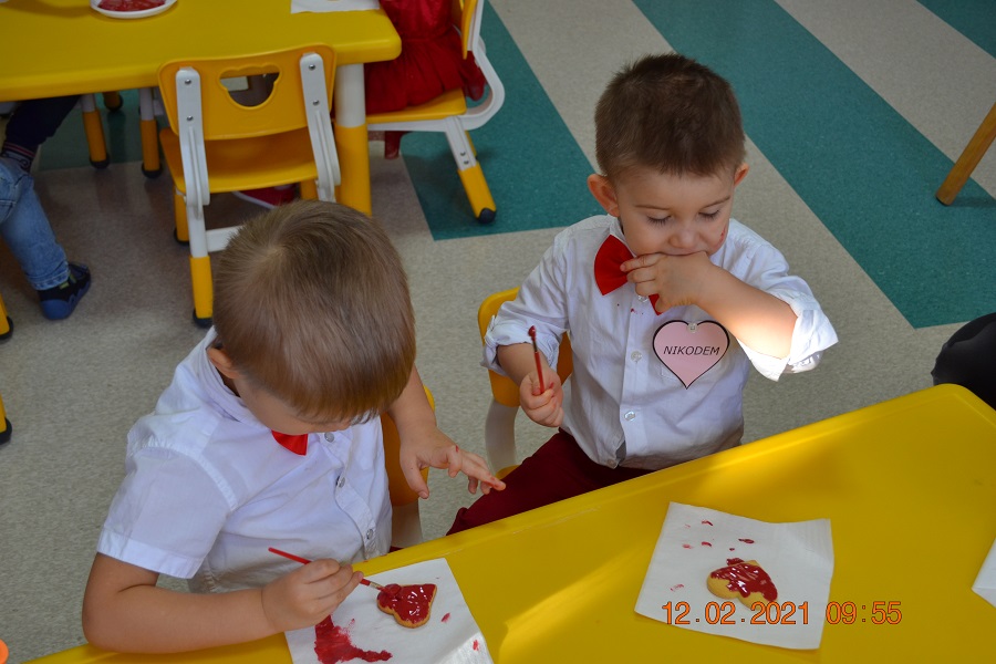 W tym dniu nasi Najmłodsi mieli w Klubiku dużo niespodzianek. Dzieci miały wyśmienite humorki, ubrane były na czerwono. Wspólnie dekorowaliśmy ciasteczka, które wcześniej piekliśmy. Było przy tym mnóstwo fajnej zabawy i oczywiście smakowania czerwonego lukru. Były tańce w parach, a to wszystko zostało udokumentowane na zdjęciach.