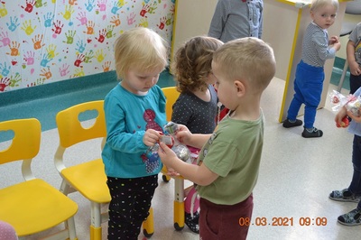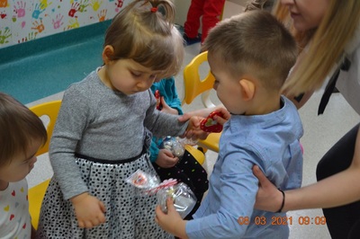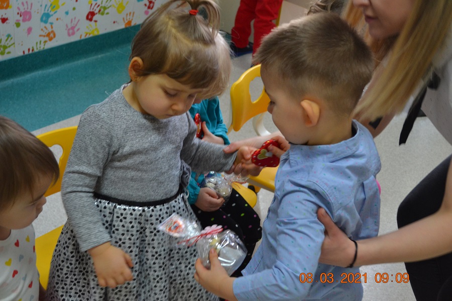 Jednak to nie koniec wrażeń tego dnia, bo dziewczynki zrobiły niespodziankę dla swoich przemiłych kolegów i już z dwudniowym wyprzedzeniem również wręczyły naszym małym mężczyznom słodkie upominki.