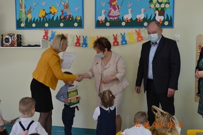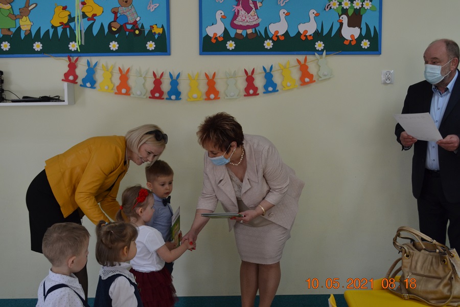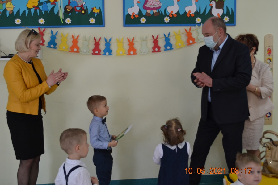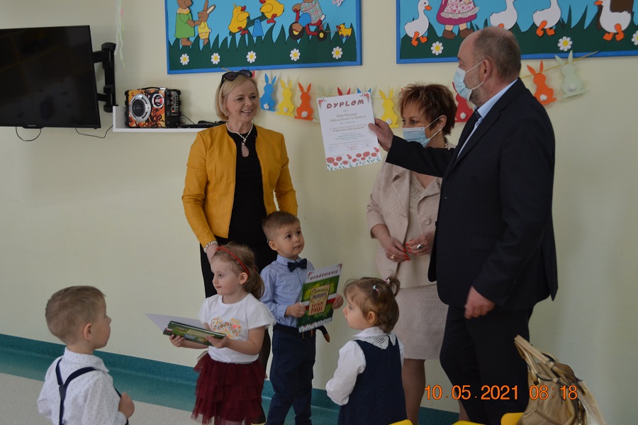 Prace zostały wykonane z dużą starannością i dokładnością. W dniu 10 maja 2021r. Klubik Dziecięcy „Radosna Kraina” w Gozdowie odwiedzili goście: pan Wójt Dariusz Kalkowski, pani Sekretarz Honorata Nagórka i pani Kierownik Gminnej Biblioteki Publicznej Renata Będzikowska i wręczyli dzieciom piękne kolorowe dyplomy oraz piękne książeczki. Gabryś i Natalka z dumą odbierali nagrody. Klub Dziecięcy „Radosna Kraina” również został nagrodzony wyróżnieniem za udział w konkursie. Dziękujemy bardzo za możliwość udziału w konkursie.