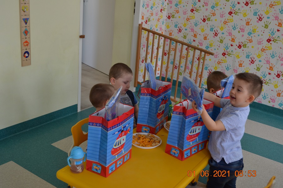 1 czerwca jest obchodzony Międzynarodowy Dzień Dziecka. Jest to jeden z najradośniejszych dni, na który czekają najmłodsi. Szczególnie w tym dniu powinny być uśmiechnięte, radosne i szczęśliwe, wszystkim zależy, aby był on pełen atrakcji, wyjątkowy i długo wspominany. W tym dniu zadbałyśmy, aby Maluszkom z naszego klubiku także nie zabrakło przyjemności. Były prezenciki, była zabawa przy dźwiękach ulubionych piosenek no i nie mogło zabraknąć słodkiego poczęstunku.