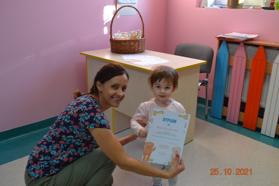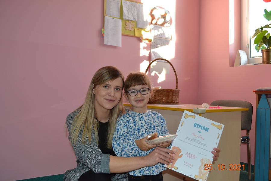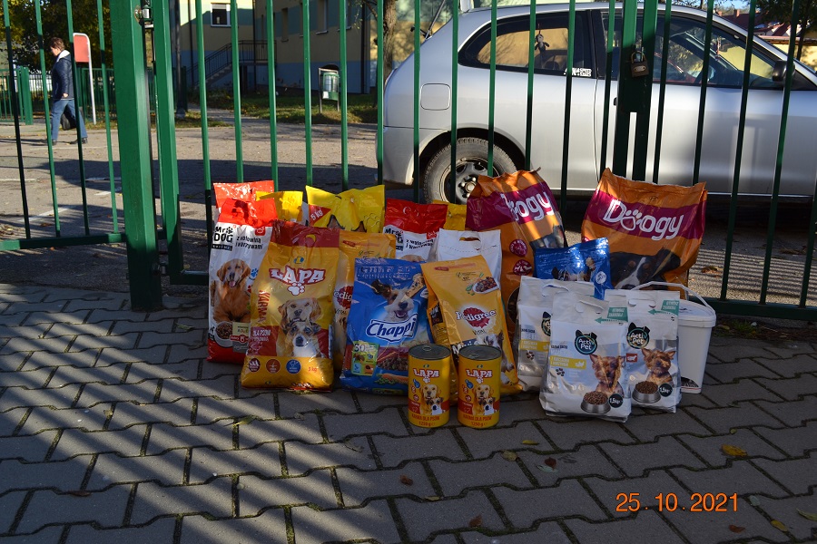 Po zakończonej akcji nasi najmłodsi wolontariusze odwiedzili przytulisko piesków na terenie GZGK i przekazały całą uzbieraną karmę. Za udział w akcji dzieci otrzymały dyplomy, oraz słodkie kruche ciasteczka.