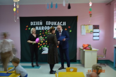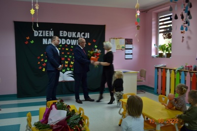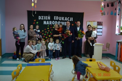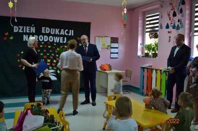 13 października Klubik odwiedził p. Dariusz Kalkowski – Wójt Gminy Gozdowo oraz p. Dariusz Śmigielski – Przewodniczący Rady Gminy Gozdowo w związku ze zbliżającym się Dniem Edukacji Narodowej. Pan Wójt podziękował wszystkim pracownikom za zaangażowanie w pracę na rzecz klubiku, za trud włożony w opiekę i wychowanie dzieci oraz złożył życzenia dalszych osiągnięć w pracy zawodowej i wszelkiej pomyślności w życiu osobistym. Z okazji 35-lecia pracy p. Marzanna Pendraszewska otrzymała z rąk pana Wójta list gratulacyjny za wieloletnią pracę z życzeniami zadowolenia i satysfakcji z wykonywanej pracy, aby kolejne lata pracy minęły w dobrym zdrowiu i pomyślności. Piękny i zacny jubileusz, któremu należy się podziw i szczere gratulacje. Serdecznie dziękujemy za trud i zaangażowanie i życzymy wszystkiego co najlepsze.