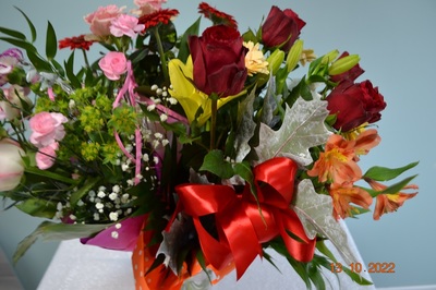Pani kierownik Aneta Chmura wraz z pracownikami podziękowała panu Wójtowi Gminy oraz panu Przewodniczącemu Rady Gminy za piękne kwiatki oraz słodką niespodziankę.