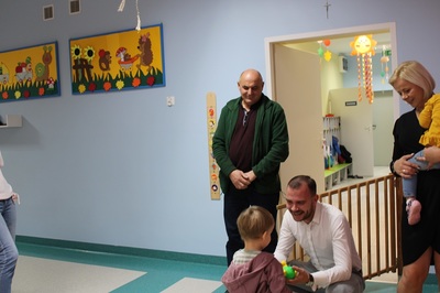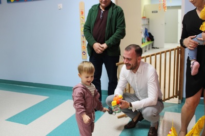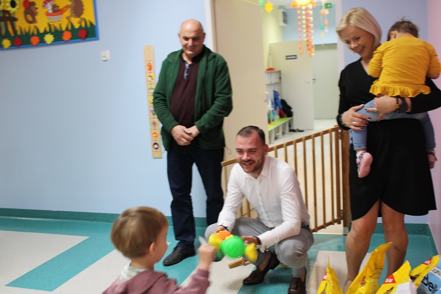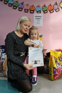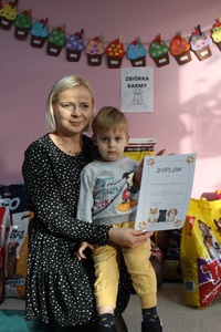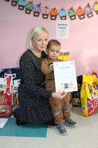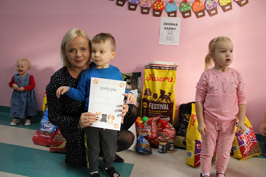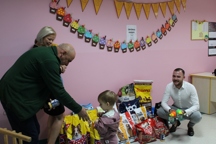Zebraną karmę przekazaliśmy kierownikowi GZGK w Gozdowie p. Patrykowi Karolkowskiemu, który w podziękowaniu przyniósł dla naszych najmłodszych małe upominki.