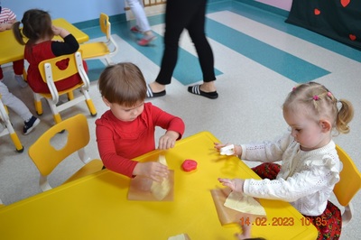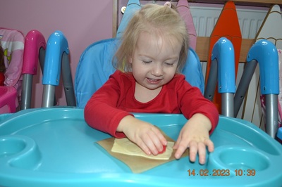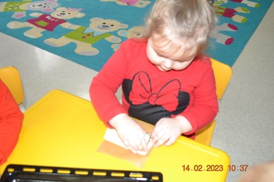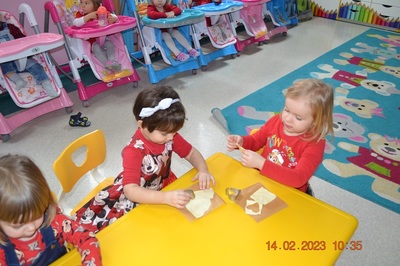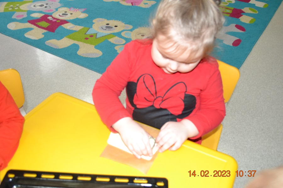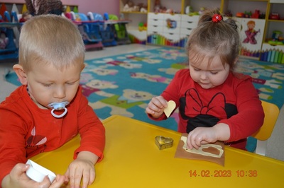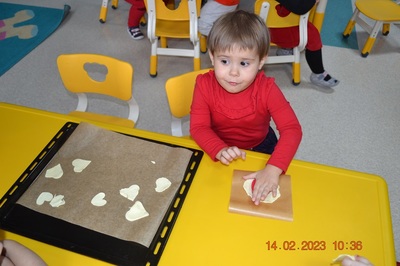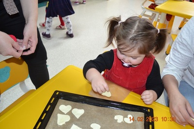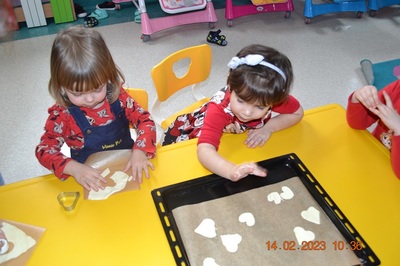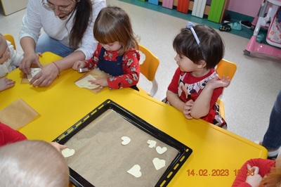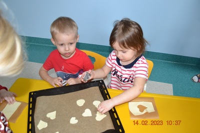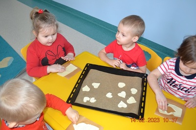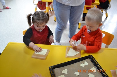 W tym dniu dzieci wykrawały z ciasta francuskiego serduszka, które zostały udekorowane marmoladą i upieczone. Po upieczeniu dzieci zabrały serduszka do domku.