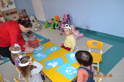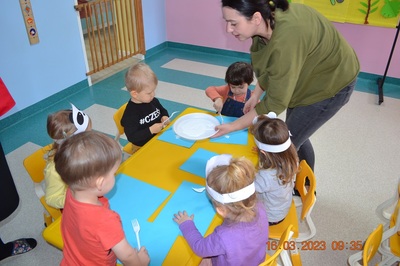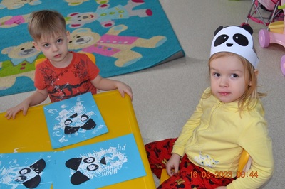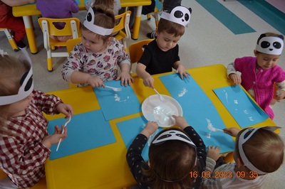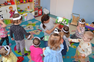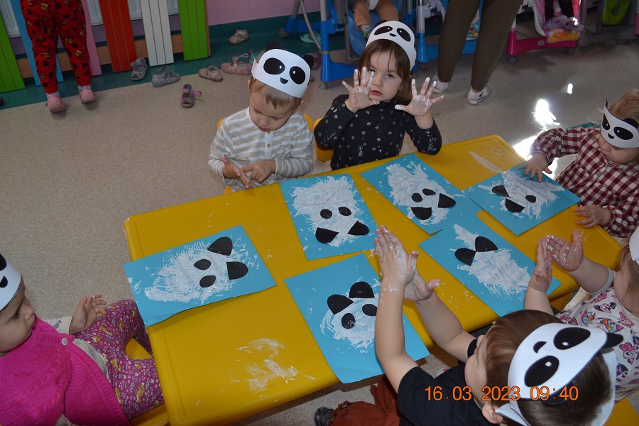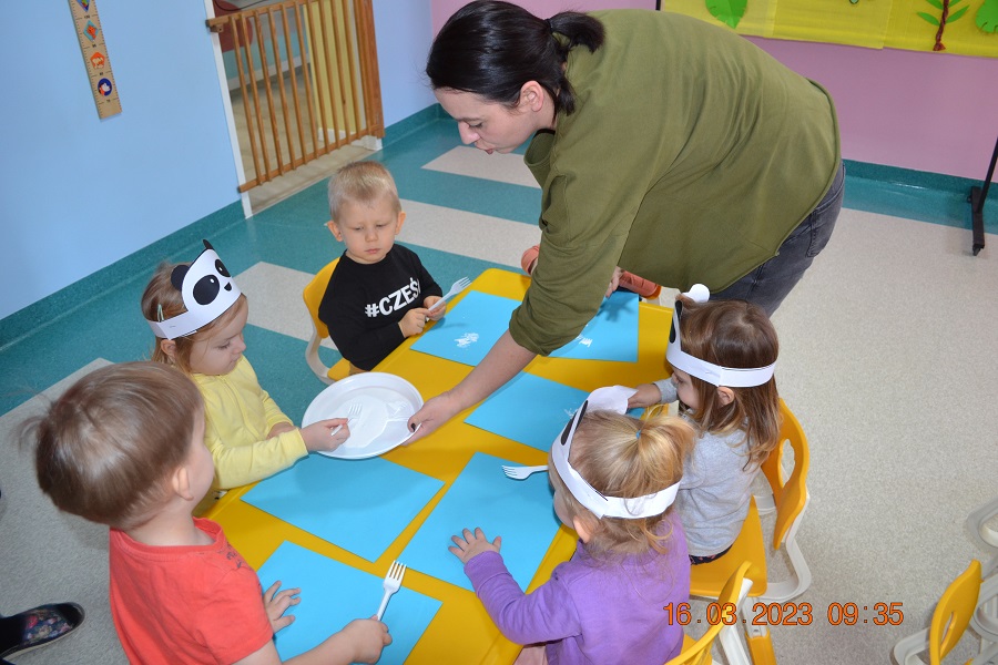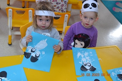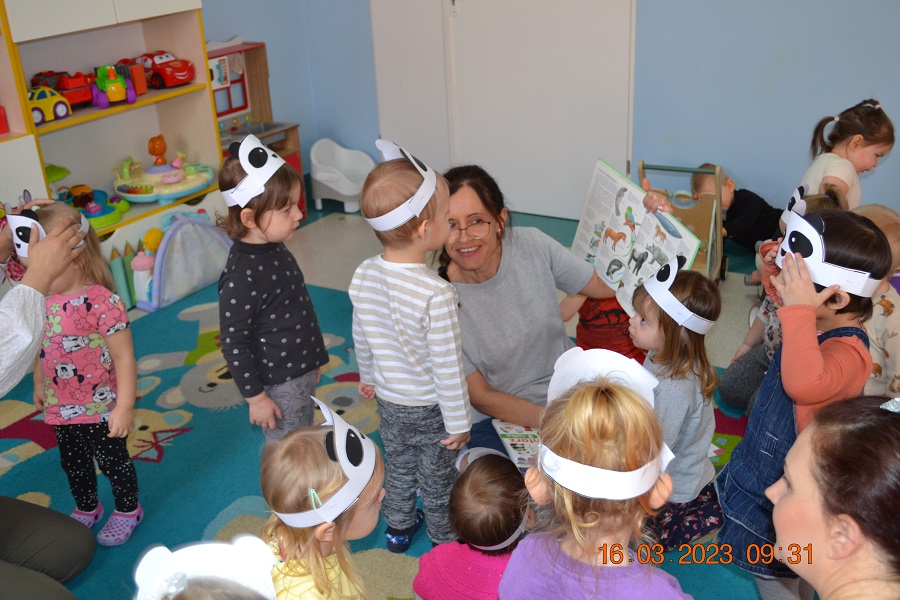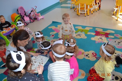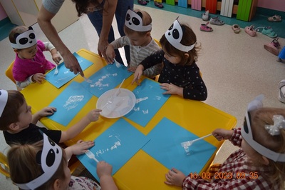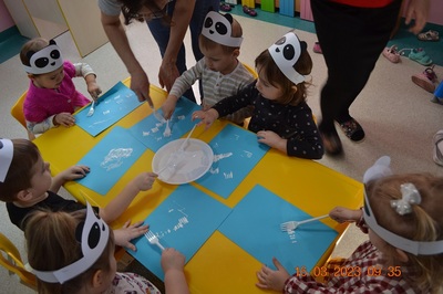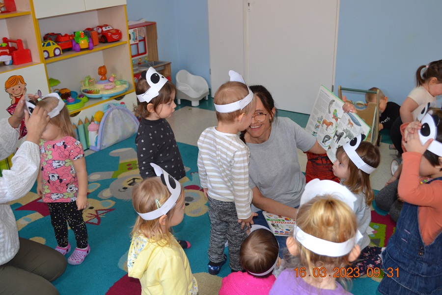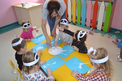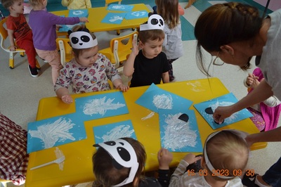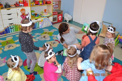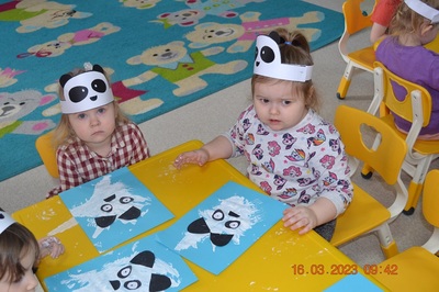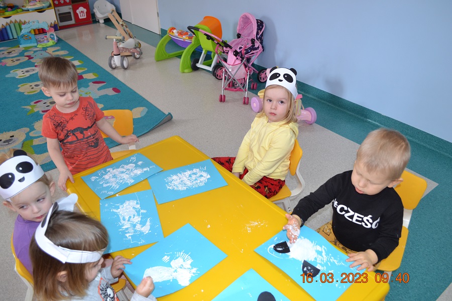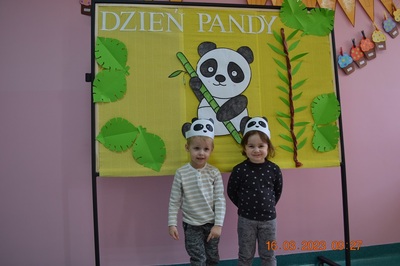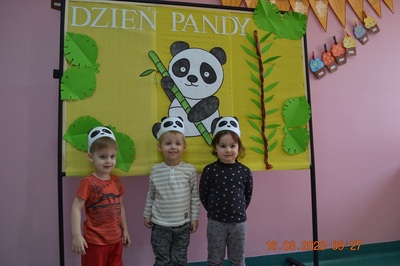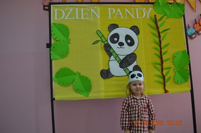 Podczas zajęć dzieci dowiedziały się ciekawych informacji na temat tego niedżwiedzia bambusowego, między innymi, że: Panda nie zapada w sen zimowy, większość dnia spędza na jedzeniu oraz bardzo lubi spać i przytulać się. Dzieci założyły opaski dzięki, którym mogły wcielić się w postać Pandy. Następnie wszytskie maluszki wykonały przepiękne prace plastyczne przedstawiające Pandę. Był to dzień pełen zabawy.
