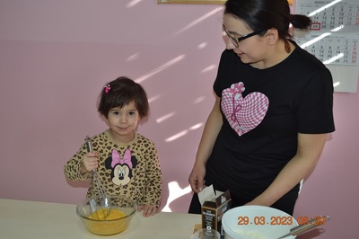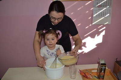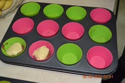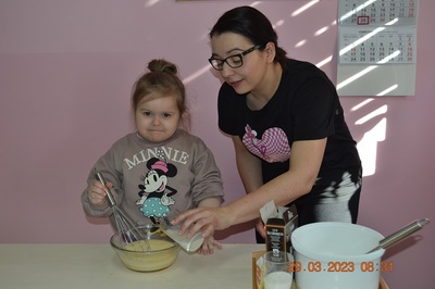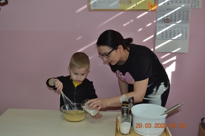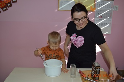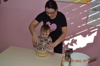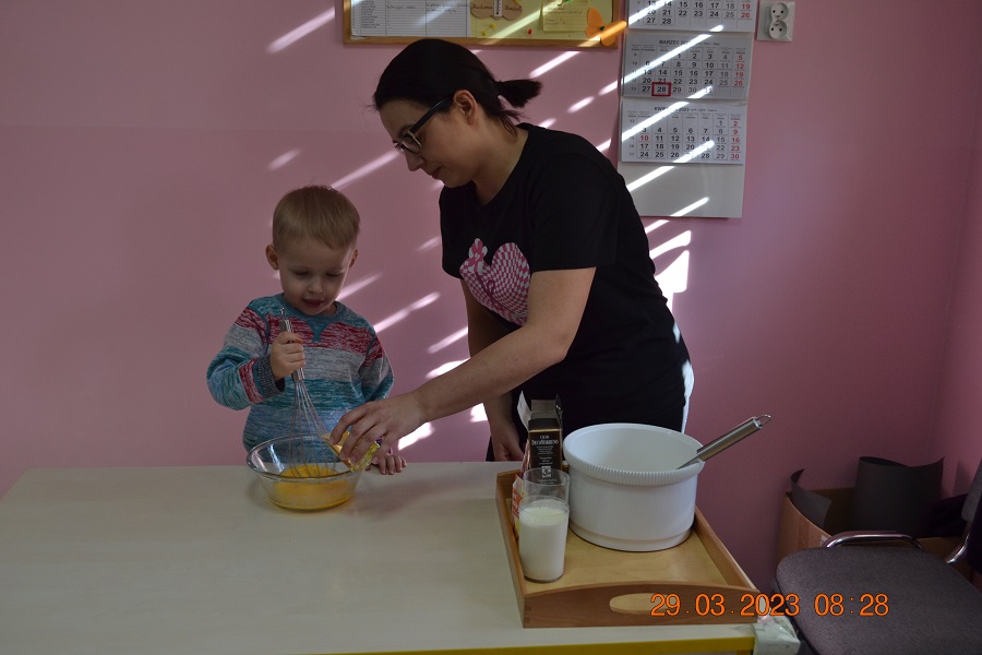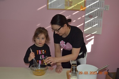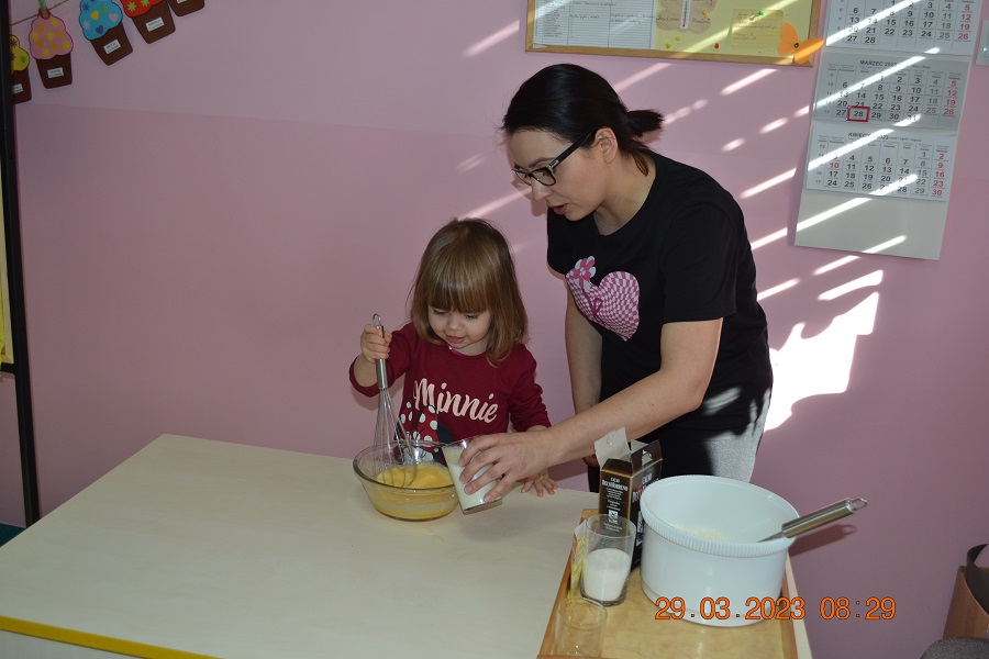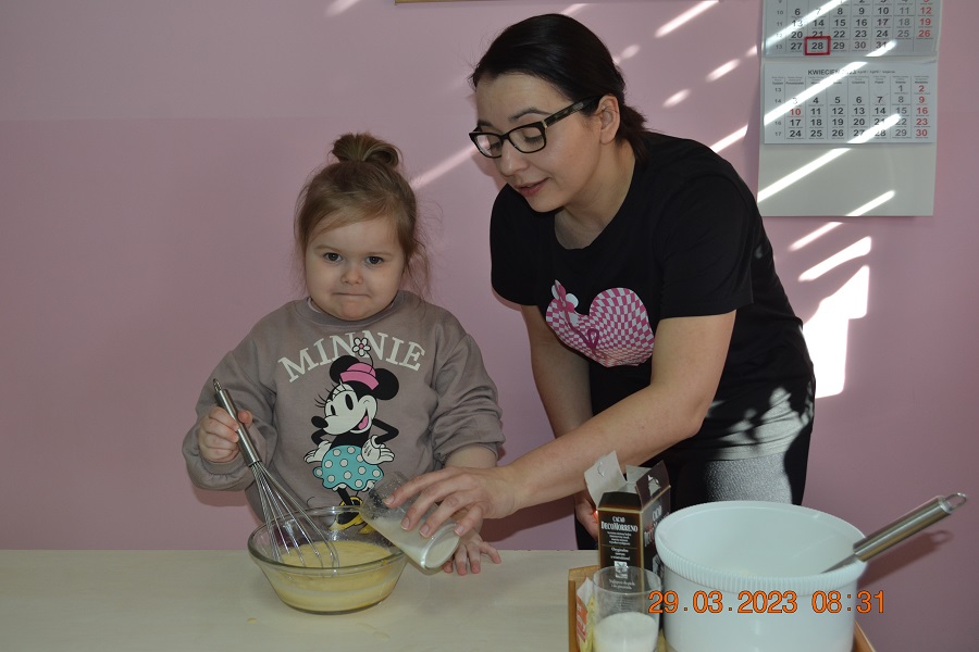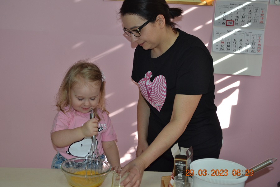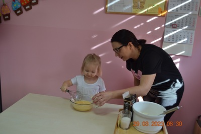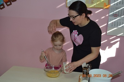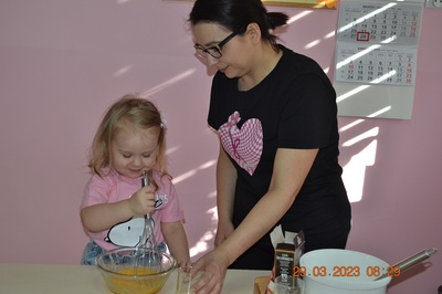 Z mamą w kuchni praca wre, każdy już muffinkę chce."