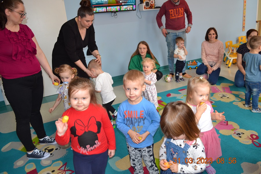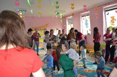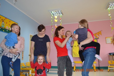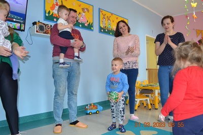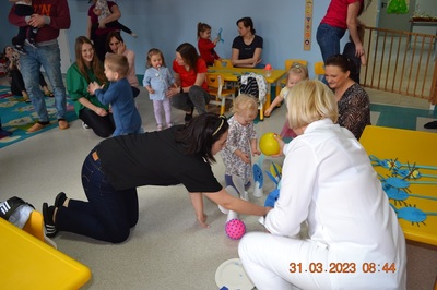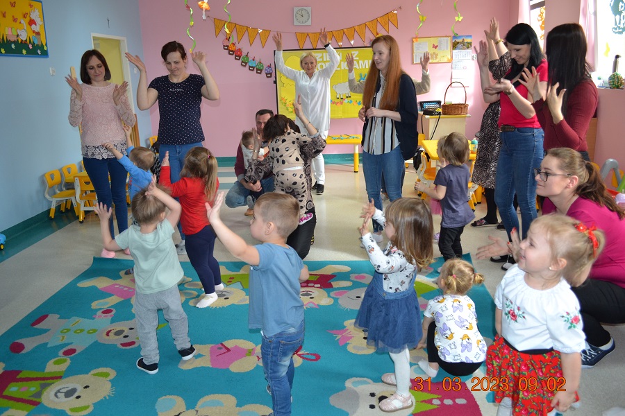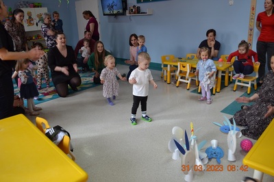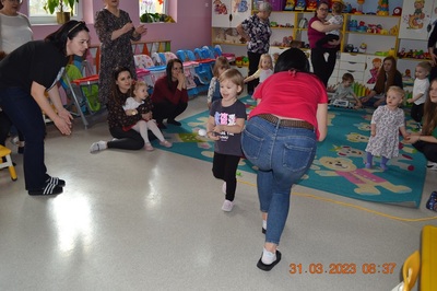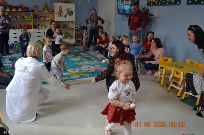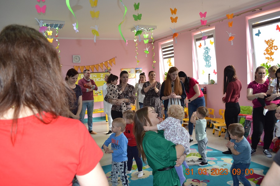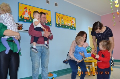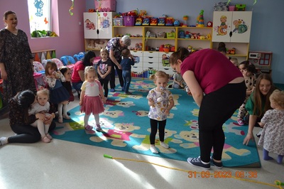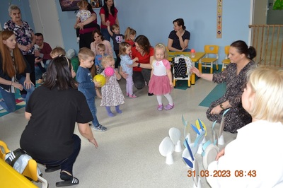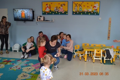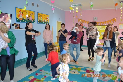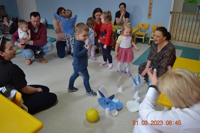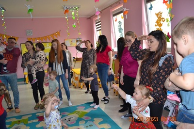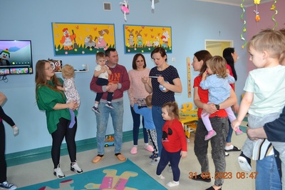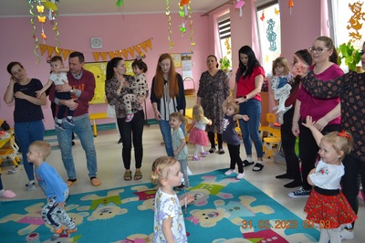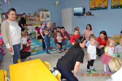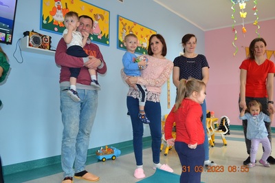 Następnie dzieci wspólnie z rodzicami brały udział w zabawach ruchowo-tanecznych. Dzień był pełen dobrej zabawy.