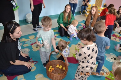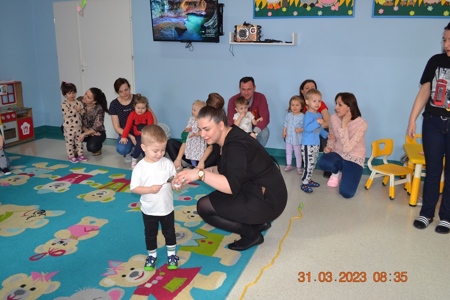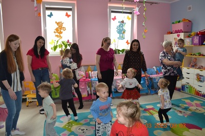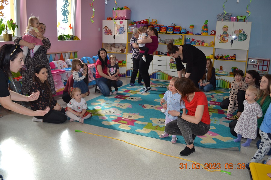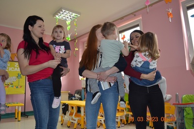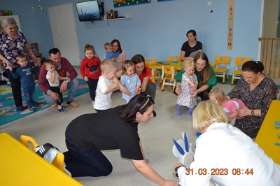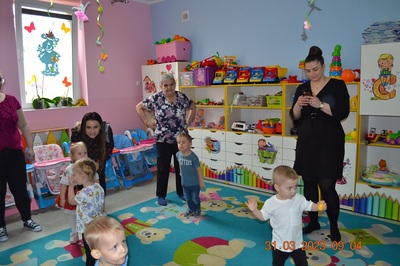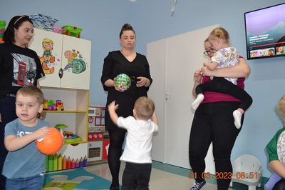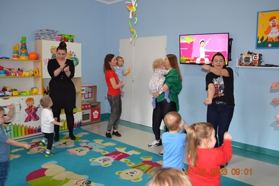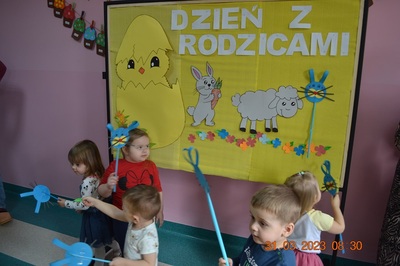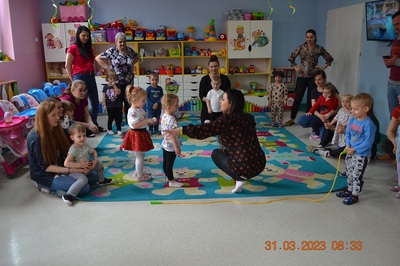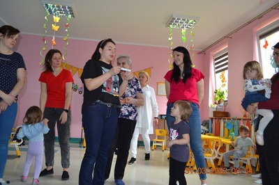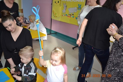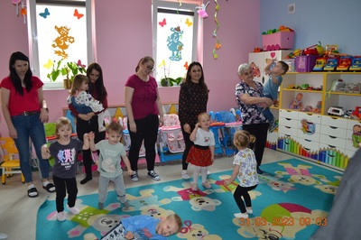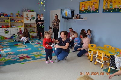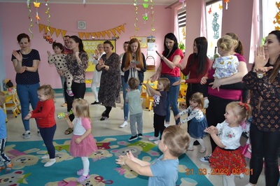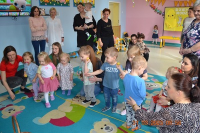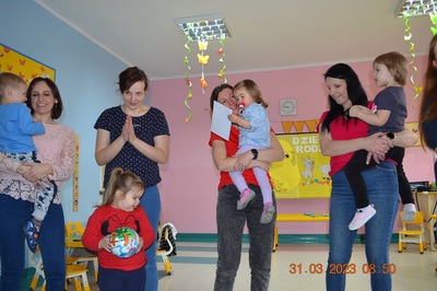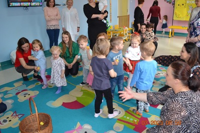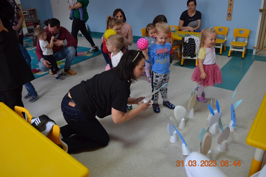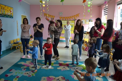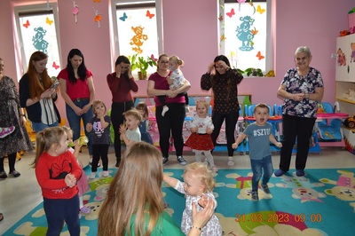 Następnie dzieci wspólnie z rodzicami brały udział w zabawach ruchowo-tanecznych. Dzień był pełen dobrej zabawy.
