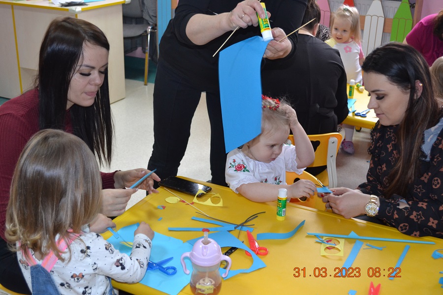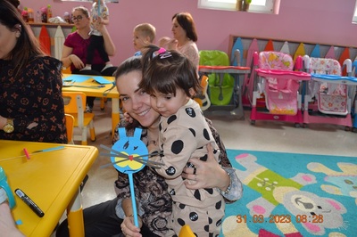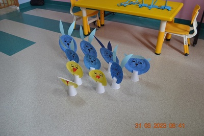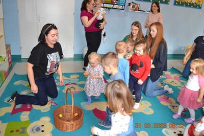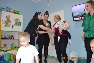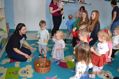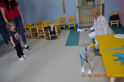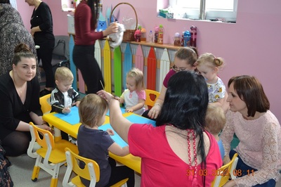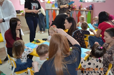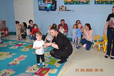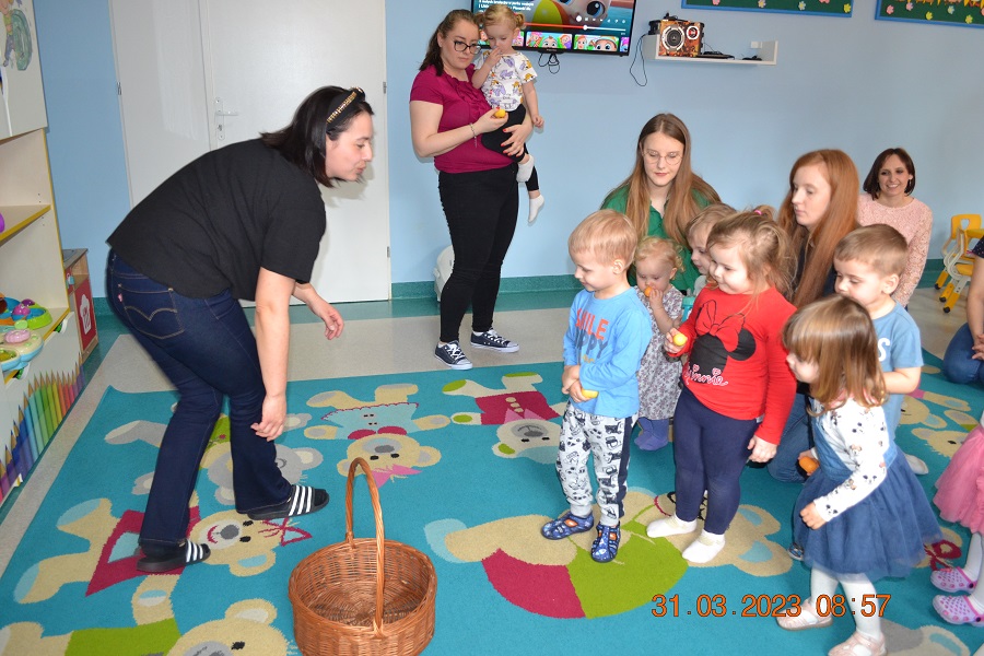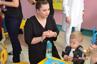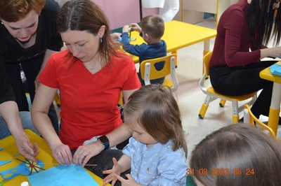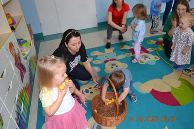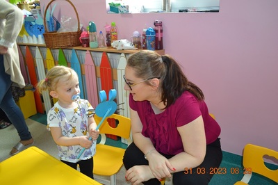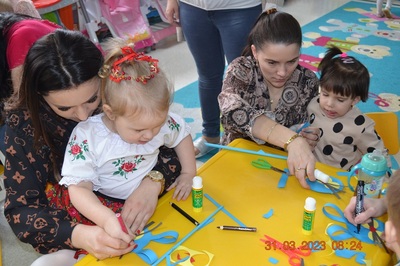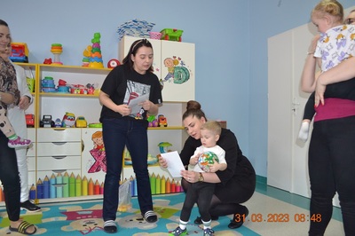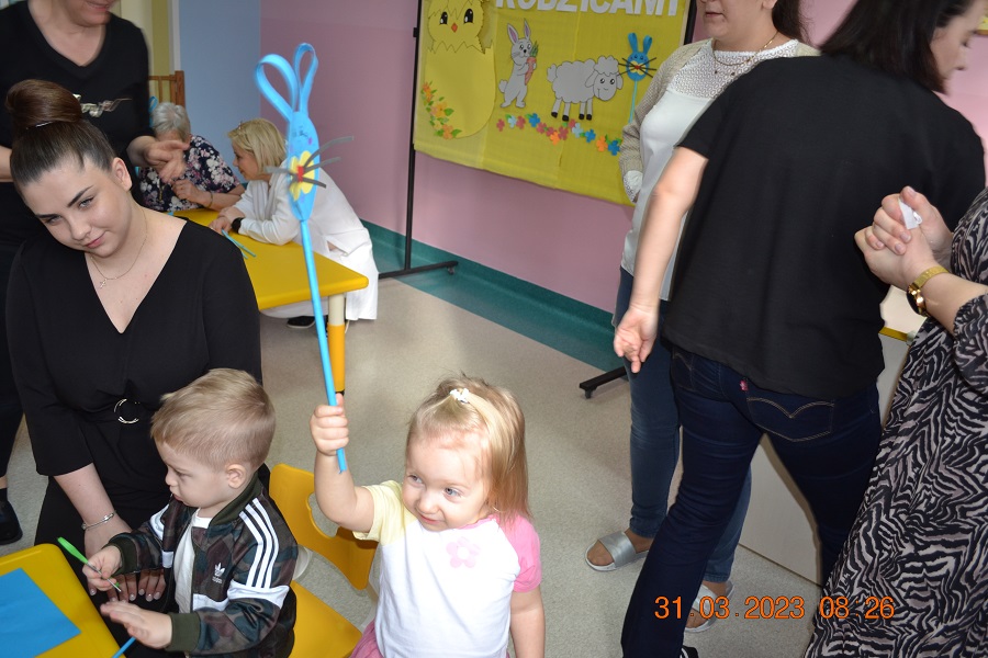 31 marca odbyły się zajęcia otwarte dla rodziców. Tego dnia rodzice zawitali do naszego klubiku, by wspólnie ze swoimi pociechami uczestniczyć w zajęciach. Na początek zajęć czekała dla rodziców i dzieci praca plastyczna pod tytułem "Zajączek". Było to wyzwanie, bo rodzice musieli wycinać nożyczkami plastikowymi, co nie jest łatwe, ale prace zostały wykonane perfekcyjnie.