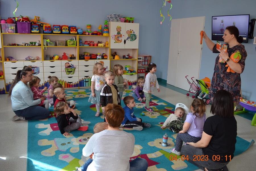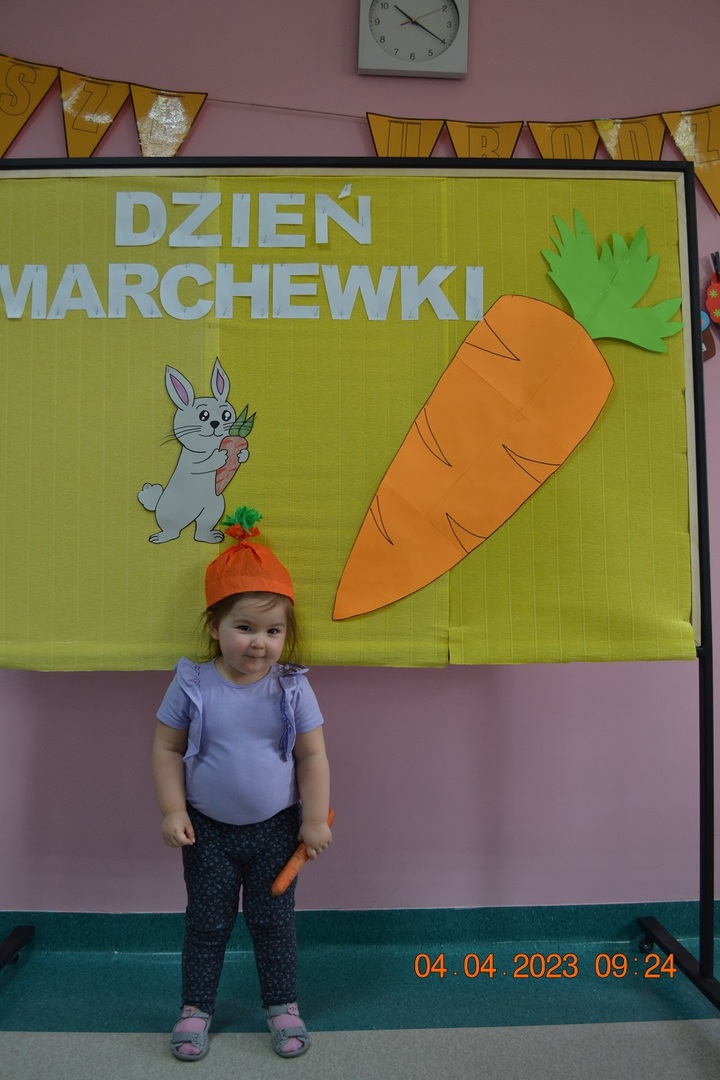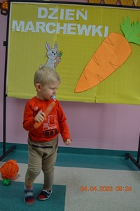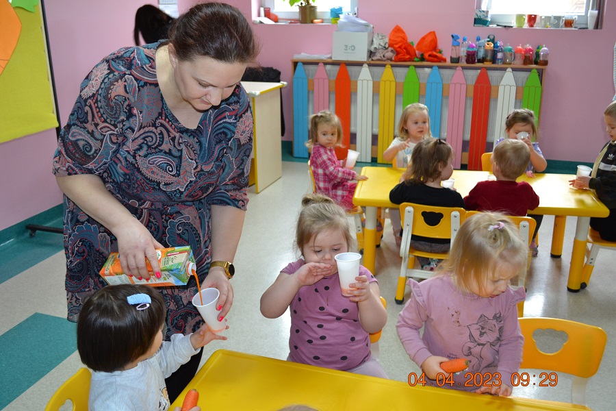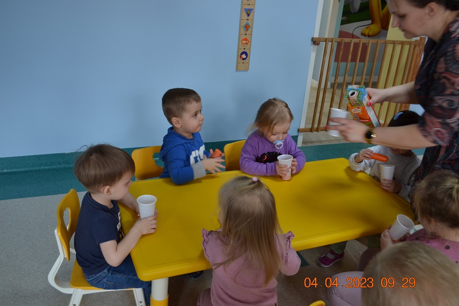 Ten dzień upłynął nam przy piosenkach, pracy plastycznej, którą dzieci wykonywały z pomocą cioć oraz na degustacji soku marchewkowego, który dzieciom bardzo smakował. Na koniec odbyła się sesja zdjęciowa z wykonanymi pracami.