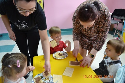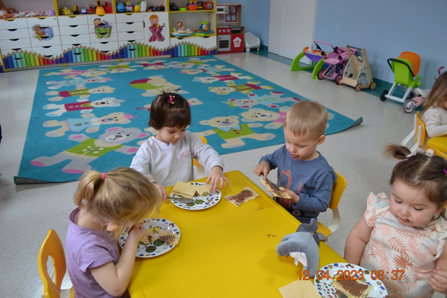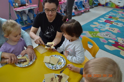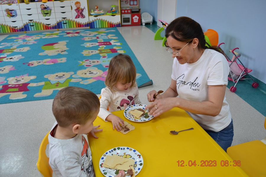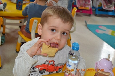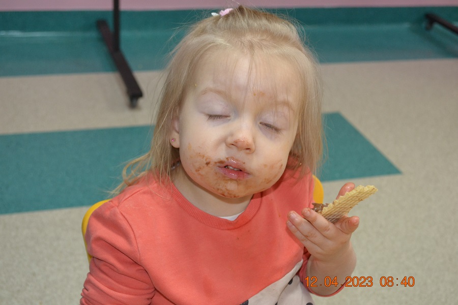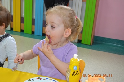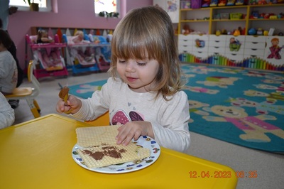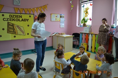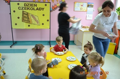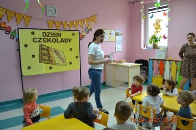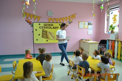 W środę 12 kwietnia w naszym klubiku odbył się Światowy Dzień Czekolady. Była to okazja, aby zobaczyć, powąchać, dotknąć, a przede wszytskim spróbować czekoladę. Dzieci dowiedziały się z czego powstaje czekolada oraz co jest jej głównym składnikiem. Maluchy poznały także jak wygląda proces tworzenia czekolady i gdzie jest stosowana. Dzeci wykonały czekoladową pracę plastyczną. Odbyły się zabawy ruchowe i tańce przy piosence o czekoladzie. Na zakończenie czekoladowego dnia maluszki mogły skosztować pysznych wafli samodzielnie ozdpbionych czekoladą. To był z pewnością pyszny dzień.