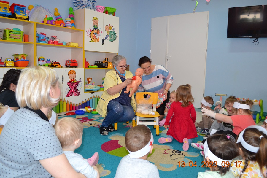 Dzieci dowiedziały się wiele ciekawych rzeczy między innymi jak dbać o zdrowie i jak się ubierać, żeby nie zachorować. Pani pielęgniarka pokazała i omówiła prawie wszystkie narzędzia jakimi posługuje się lekarz. Przybliżyła dzieciom pracę jaką wykonuje lekarz, aby dzieci nie bały się wizyt w ośrodku zdrowia.