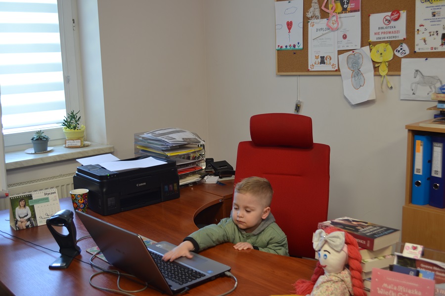8 maja to Dzień Bibliotekarza i Bibliotek. Z tej okazji dzieci wykonały przepiękne prace plastyczne. Dzieci z klubiku postanowiły również wybrać się do Gminnej Biblioteki Publicznej w Gozdowie, aby podziękować za pracę pań bibliotekarek oraz życzyć mnóstwa szczęśliwych dni, pełnych książkowych przygód. Pani Kierownik w podziękowaniu za pracę wręczyła Paniom bibliotekarkom upominki - własnoręcznie wykonane zakładki do książek. Pani bibliotekarka oprowadziła dzieci po bibliotece oraz wyjaśniła jaką funkcję spełnia biblioteka. Maluchy mogły wcielić się w rolę pracownika biblioteki, więc bardzo chętnie skorzystały z akcji „ Zasiądź w fotelu bibliotekarza” .