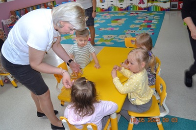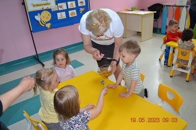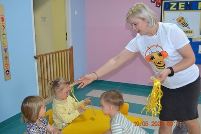 W dniu dzisiejszym obchodziliśmy „Dzień Pszczół”. Dzieci dowiedziały się jak ważną rolę w życiu każdego z nas odgrywa ten mały pracowity owad. Przy pomocy kolorowych rysunków dzieci poznały budowę pszczoły, a co ważniejsze dowiedziały się jaka hierarchia panuje w domku u pszczół. Dzieci bardzo chętnie rozwiązywały krzyżówkę, ale też obiecały wspólnie z rodzicami odrobić pracę domową a mianowicie, kolejną krzyżówkę. Maluchy dowiedziały się , że pszczoły produkują miód, który jest bardzo zdrowy. Skoro o miodzie mowa, to przecież nie mogło zabraknąć na obchodach Dnia Pszczół degustacji tego smakołyku.