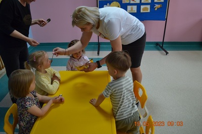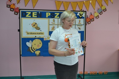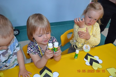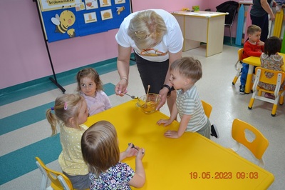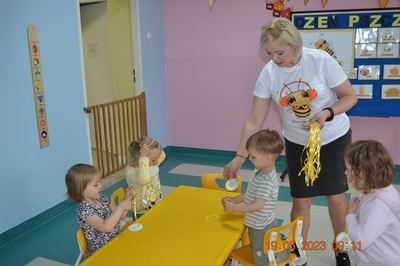 Dzieci na koniec wykonały pracę plastyczną i dostały medale, a także obiecały dbać i chronić małe pszczoły, dzięki którym mamy owoce, warzywa i …..
