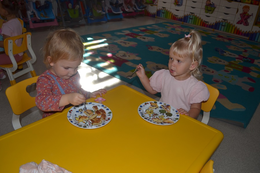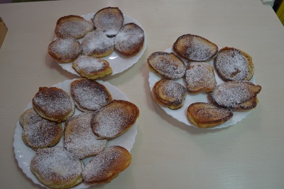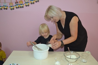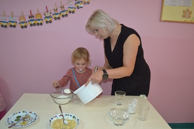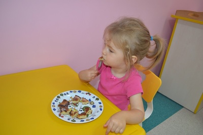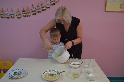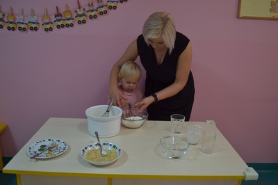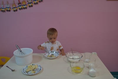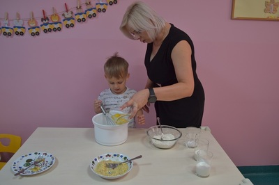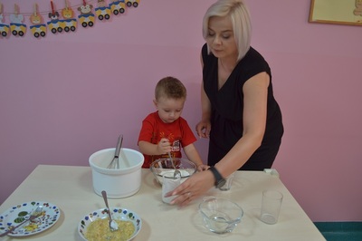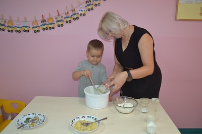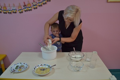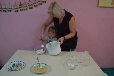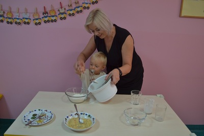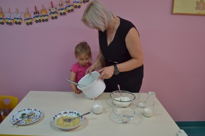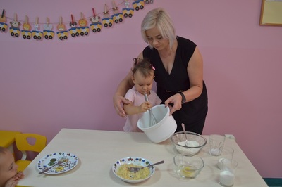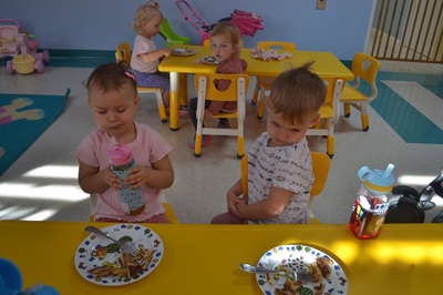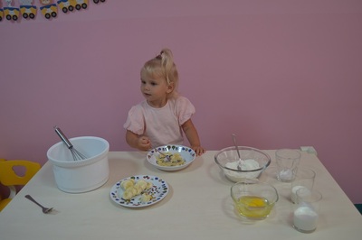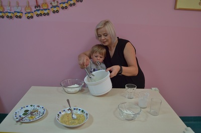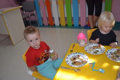 Dziś w naszym klubiku obchodziliśmy dzień placuszka- jednego z ulubionych deserów dzieci i dorosłych. Jego celem było zachęcenie dzieci do samodzielnego przygotowywania posiłków (pod nadzorem dorosłych). Zajęcia rozpoczęliśmy od rozmowy kierowanej na temat placuszków- dzieci dowiedziały się że placuszki można jeść na słodko, słono, z jabłuszkiem , z bananem.... Zastanawialiśmy się jakie składniki są potrzebne do zrobienia ciasta na placuszki. Następnie dzieciaczki umyły ręce i zabrały się do wykonania ciasta. Z pomocą cioć odmierzały składniki, wlewały, wsypywały i mieszały. Na koniec degustowały przygotowane przez siebie placuszki z bananem.