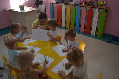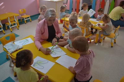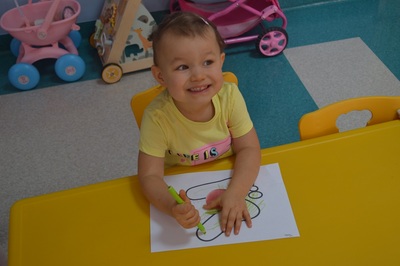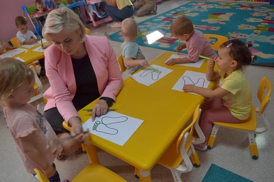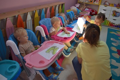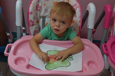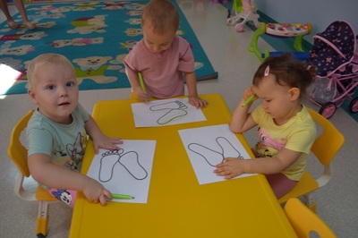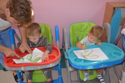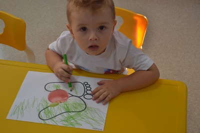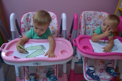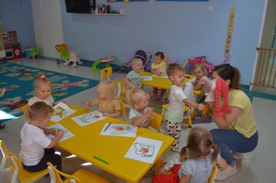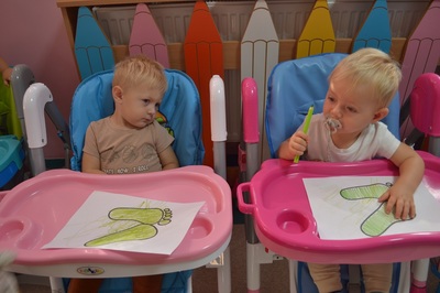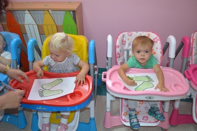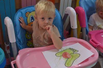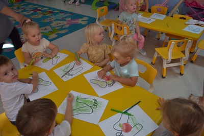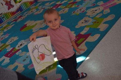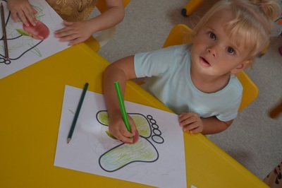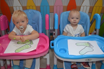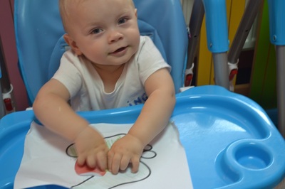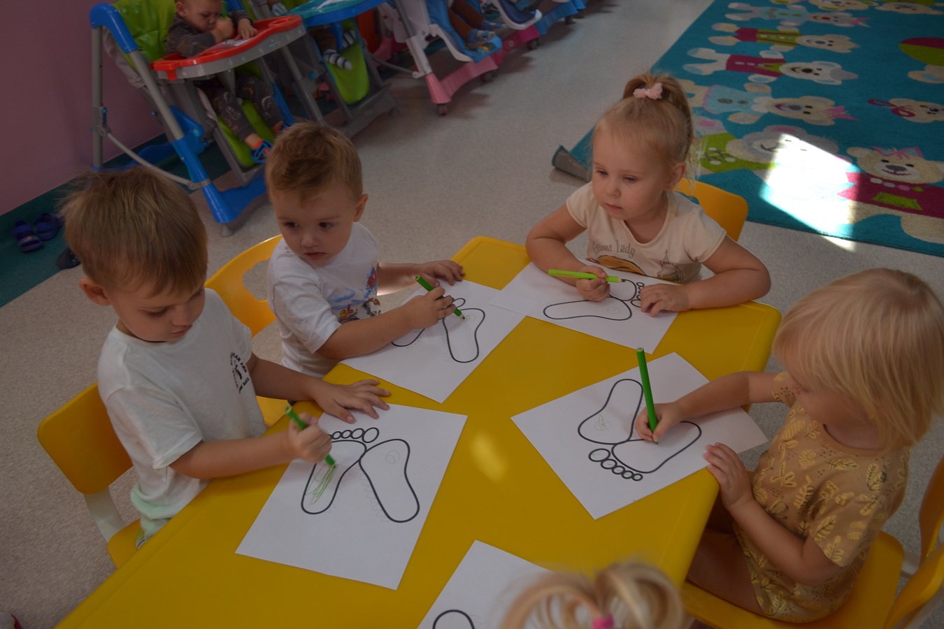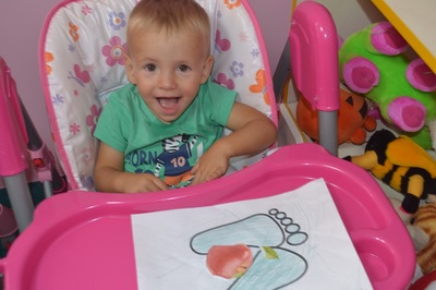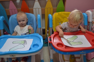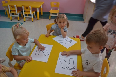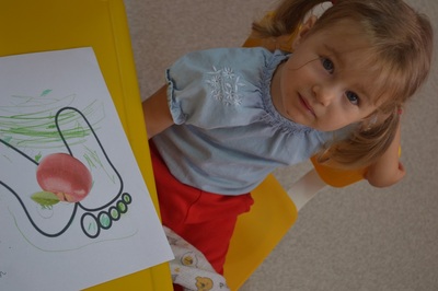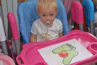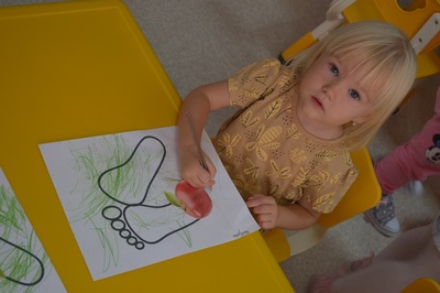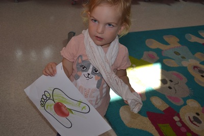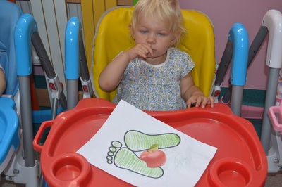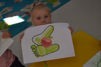 Po lekturze niezwykle kolorowej książki dzieciaczki zabrały się do pracy kreatywnej.  Maluchy z odcisków stóp wykonywał krokodyle na następnie częstowały je jabłkami z okazji Dnia Jabłka! Nawet krokodyle wiedzą, że owoce są dobre dla zdrowia.