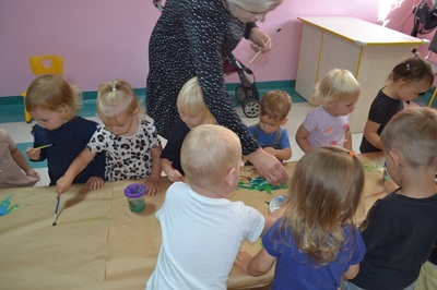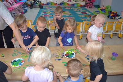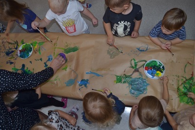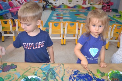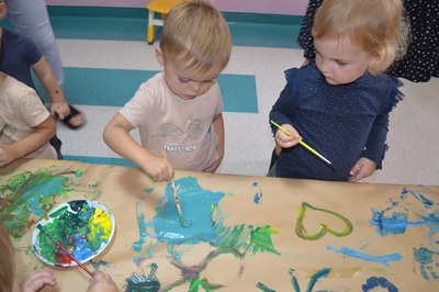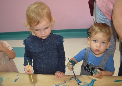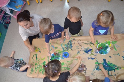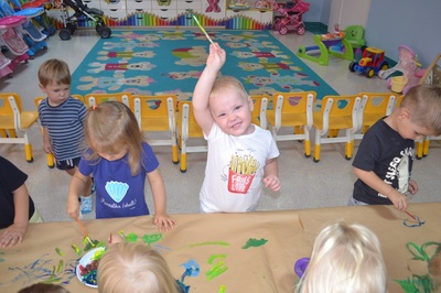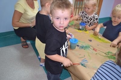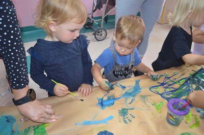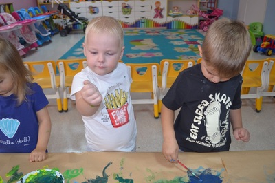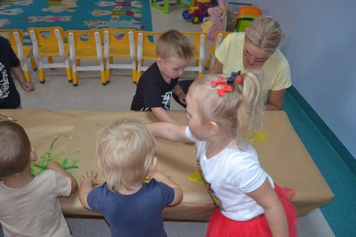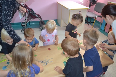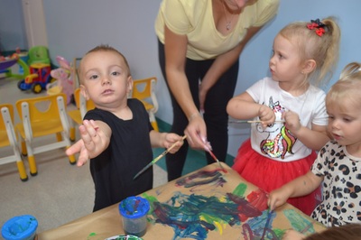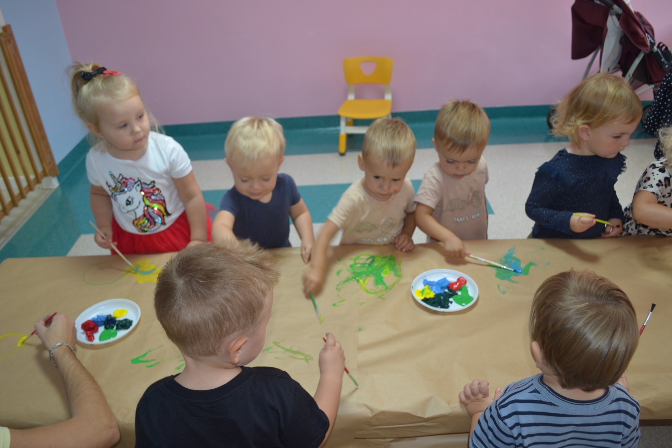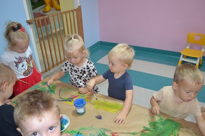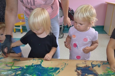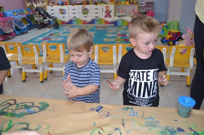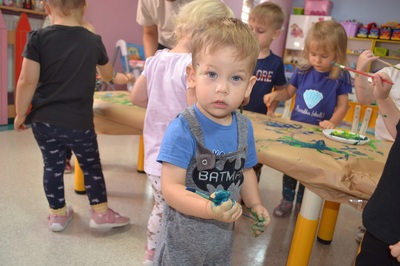 Podczas minionego tygodnia malowaliśmy farbami. Zabawa z farbami to świetna i kreatywna zabawa, która rozwija dziecięcą wrażliwość na piękno.Swobodne malowanie farbami czyli praca dowolna to technika która pozwala na swobodną ekspresję emocji, rozwija wrażliwość dziecka i kształtuje jego emocjonalny stosunek do otoczenia. Jednak dzieci z naszego klubiku postanowiły urozmaicić sobie zajęcia i przenieś malowanie z papieru na rączki. Sprawiło im to wiele radości i stało się świetnym i kreatywnym spędzeniem czasu. Zabawy było co nie miara.