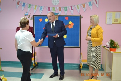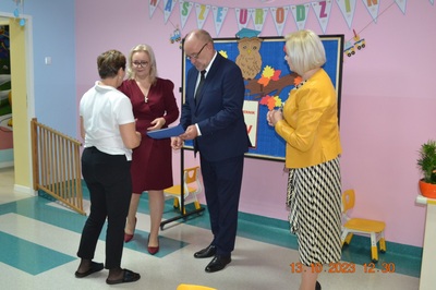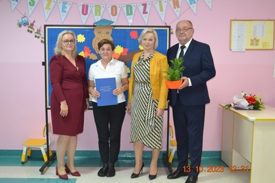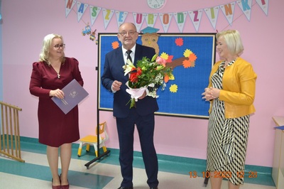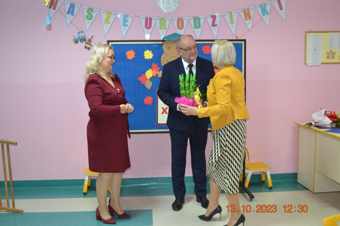 W tym uroczystym dniu odwiedził nas Wójt Gminy Gozdowo Pan Dariusz Kalkowski wraz z Skarbnikiem Gminy Gozdowo Panią Lidią Siemiątkowską. Pan Wójt podziękował wszystkim za trud i zaangażowanie w opiekę i wychowywanie naszych Maluszków obdarowując jednocześnie pracowników pięknymi kwiatami oraz pysznym tortem.