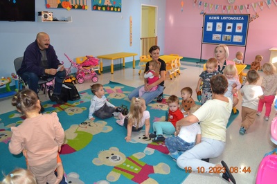 18 października każdy Listonosz w naszym kraju ma swoje święto. Pomimo dnia pełnego obowiązków Pan Listonosz Marek Czachorowski pracownik pobliskiej poczty znalazł chwilę, aby odwiedzić naszych maluszków. Opowiedział nam o swojej pracy i pokazał co kryje jego magiczna torba. Poznaliśmy zawód Listonosza i jego obowiązki. Teraz już wiemy, że to on dostarcza do domów wszystkie listy i paczki. Dowiedzieliśmy się, jak należy poprawnie zaadresować list, gdzie przykleić znaczek na kopercie. Pan listonosz opowiedział nam również jak długą drogę musi przebyć list lub paczka, by trafił do naszej skrzynki pocztowej. Dzięki tej wizycie dzieci dowiedziały się, jak trudna i odpowiedzialna jest praca listonosza doręczającego listy, przesyłki i paczki prosto do adresatów.