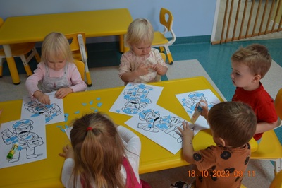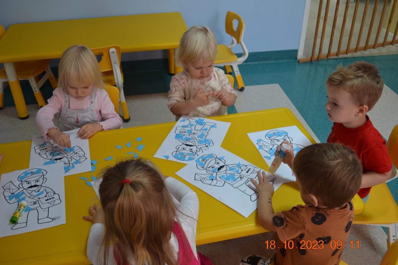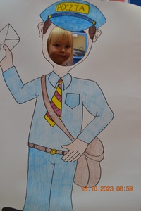 Spotkanie, okazało się być bardzo ciekawym i emocjonującym doświadczeniem dla naszych maluchów. Resztę dnia poświęciliśmy na zabawę w pocztę oraz na pracę plastyczną.