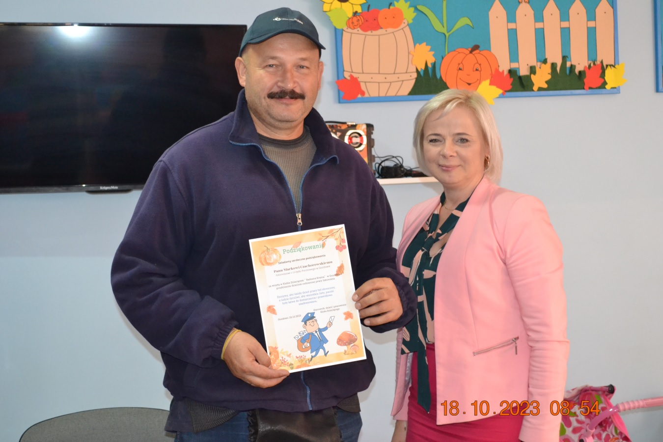 W podziękowaniu za tak wspaniałe spotkanie, maluszki wręczyły Panu Markowi dyplom.