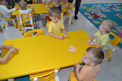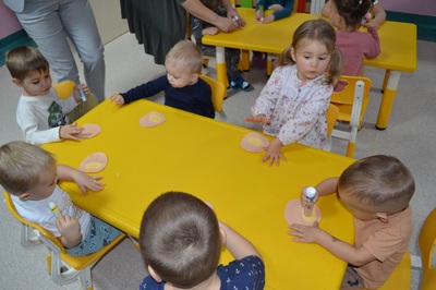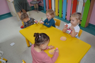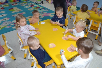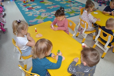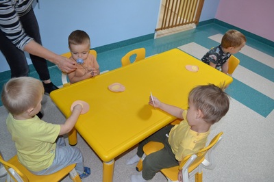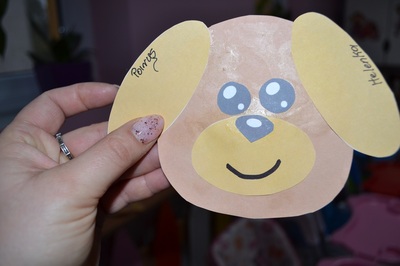 Tego dnia dzieci dostały za zadanie wykonać pyszczek pieska z powycinanych, gotowych do sklejenia elementów. Mnóstwo zabawy było przy wymyślaniu imion dla wykonanych piesków.