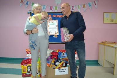 Karma została przekazana do przytuliska w GZGK w Gozdowie na ręce Pana Wiesława Szczechowicza, który obiecał, że pieski,  które przybędą do przytuliska otrzymają zebrane przez nas przysmaki. Pan Wiesiu również przyniósł słodką niespodziankę dla wszystkich dzieci, za którą bardzo dziękujemy.