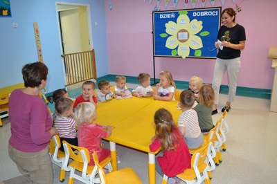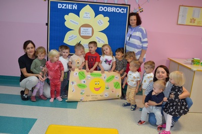 W naszym klubiku obchodziliśmy Dzień Dobroci i Życzliwości. Dzieci dowiedziały się, co to takiego jest dobroć i życzliwość i w jak prosty sposób możemy sobie ją okazywać.  Dzień Dobroci to dzień dobrych uczynków, pozytywnej atmosfery i serdeczności. Jego celem jest uwrażliwienie na wzajemną życzliwość, wzbudzenie pozytywnych emocji. W tym dniu rozmawialiśmy o tym, jak okazywać sobie nawzajem dobroć, koleżeństwo i uprzejmość, a także kulturalnie odnosić się do rówieśników i dorosłych, obdarowywaliśmy się uśmiechami, uczestniczyliśmy w integracyjnych zabawach koleżeńskich oraz przygotowaliśmy piękny plakat życzliwości . Podczas zajęć maluchy przypomniały sobie „magiczne słowa”: przepraszam, dziękuję, proszę oraz ich wielkie znaczenie dla każdego człowieka. Dzień Dobroci Życzliwości  to wspaniały moment by przypomnieć sobie, ile w naszych codziennych relacjach znaczą proste słowa: dzień dobry, miłego dnia, dobrze, że tu jesteś, a także jak cudowną i ciepłą atmosferę wprowadza serdeczny uśmiech na twarzy. Z pewnością maluchy będą życzliwe dla siebie i najbliższych na co dzień, nie tylko w tym wyjątkowym dniu.