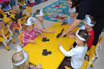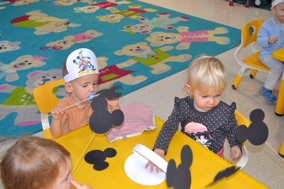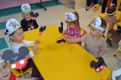 Myszka Miki to postać znana na całym świecie. Lubią Ją nie tylko dzieci, ale również dorośli, jest bohaterem licznych kreskówek z uniwersum Walta Disneya. 18 listopada obchodzi swoje urodziny, i to właśnie wtedy cały świat celebruje Dzień Myszki Miki, czyli Mickey Mouse Day. Nasze maluszki również postanowiły świętować razem z Myszką Miki. Na początek dzieciaczki założyły opaski z wizerunkiem Myszki Miki. Następnie wykonały pracę plastyczną – twarz Myszki Miki. Wyklejały oraz kolorowały rozwijając sprawność manualną oraz świetnie się przy tym bawiąc. Maluchy poznały historię Myszki Miki oraz zrobiły sobie pamiątkowe zdjęcie w fotobudce. Na koniec dzieci z zaciekawieniem obejrzały film o przygodach Myszki Miki. Wszystkim dzieciom bardzo spodobał się ten wyjątkowy dzień z bajkową postacią.