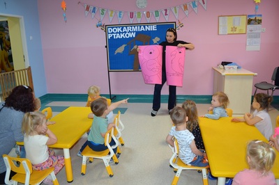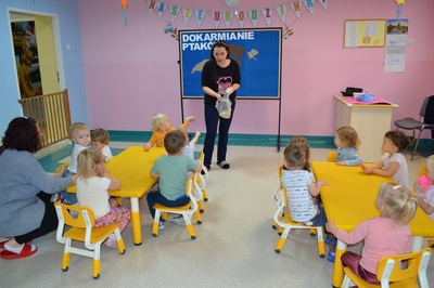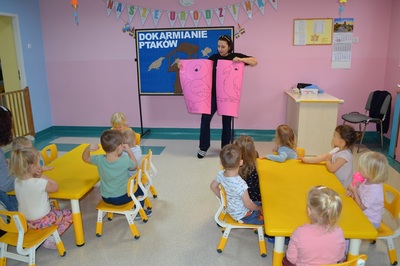Zima to to trudny czas dla ptaków, ale z naszą pomocą przetrwają na pewno łatwiej. O skrzydlatych przyjaciół jak co roku pamiętają nasze maluchy. Dzieci dbają o to , aby ich skrzydlaci przyjaciele podczas tegorocznej zimy nie były głodne. W Klubikowym ogrodzie mają do dyspozycji karmnik , który uzupełniają ptasimi przysmakami. Dokarmiając ptaki, maluchy zbliżają się do nich, uczą się, pobudzają swoje zainteresowanie i uwrażliwiają na przyrodę, a także zyskują poczucie, że robią coś dobrego. Dzieci słuchały opowiadań, poświęconych tematyce dokarmiania ptaków, wykonały ciekawe prace plastyczne a także oglądały filmy edukacyjne.