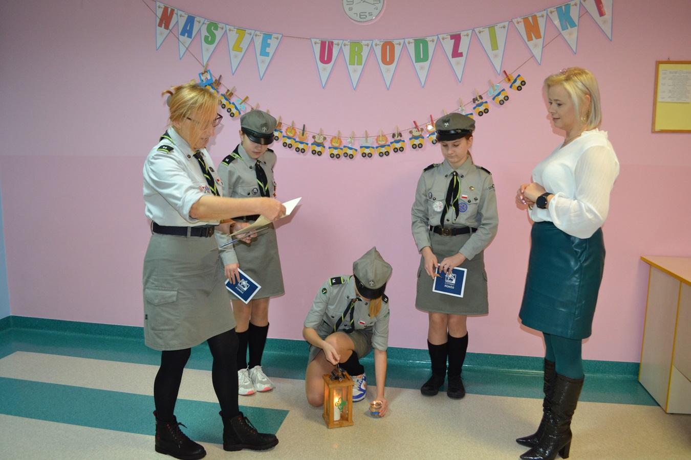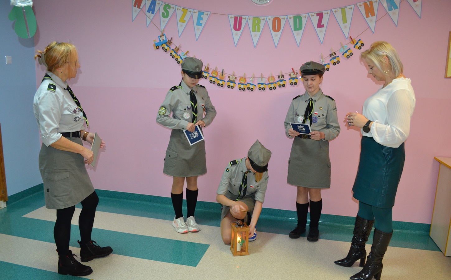 Betlejemskie Światło Pokoju przywiezione z Jasnej Góry przez reprezentację 14. Drużyny Harcerskiej ze Szkoły Podstawowej w Gozdowie w dniu dzisiejszym zostało przekazane na ręce Pani Kierownik. Jest ono symbolem ciepła, miłości, pokoju i pojednania.