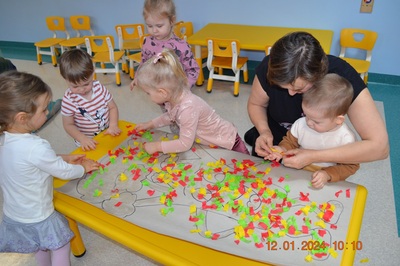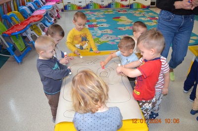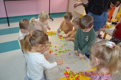 Tego dnia wszystkie dzieci posmakowały pieczonych batatów, marchewek,białych ziemniaków itp. Na sam koniec zrobiliśmy pracę plastyczną metodą wyklejania bibułą, obrazka papryki i brokuła.