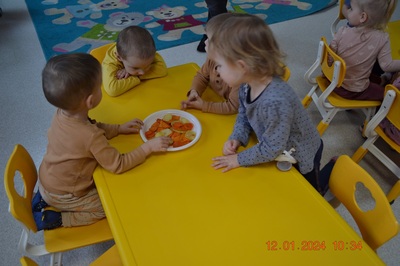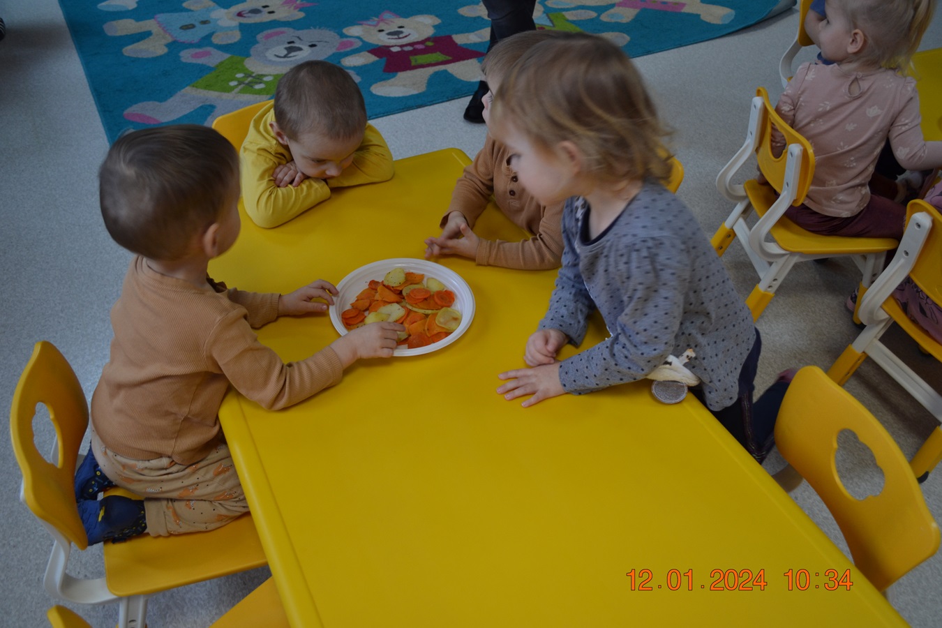 11 stycznia dzieci obchodziły Światowy Dzień Wegetarian. Maluchy nie tylko zapoznały się z pojęciami ,,wegetarianizm” oraz ,,wegetarianin” ale i była to doskonała okazja do rozmowy na temat zdrowego odżywiania oraz tego jak istotne jest jedzenie owoców i warzyw w życiu każdego człowieka.