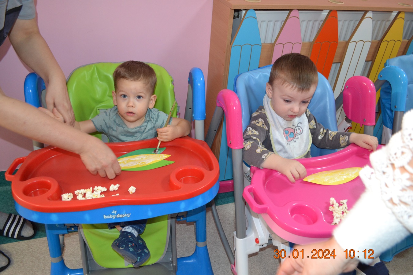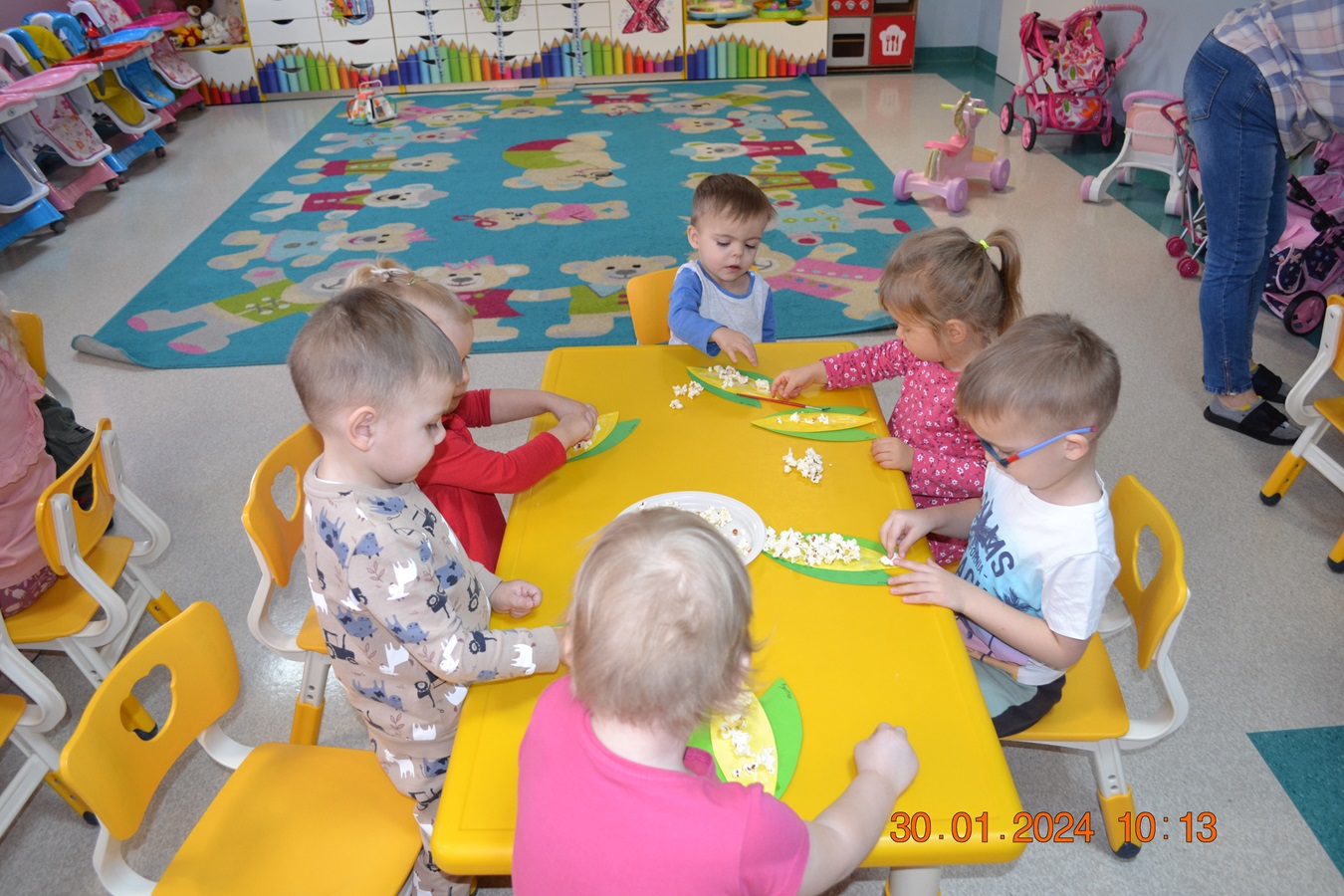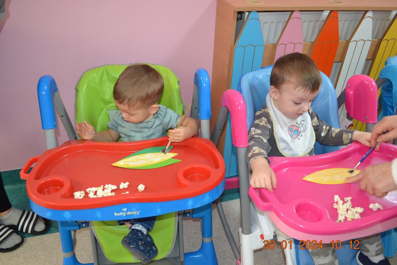 19 Stycznia obchodziliśmy w klubiku nietypowe święto. Nietypowe ale za to jakie pyszne. Najważniejszy tego dnia był przysmak wszystkich dzieci popcorn. Najpopularniejsza przekąska podczas seansów filmowych zarówno tych domowych, jak i w kinach. Jak wiadomo najlepsza nauka jest przez zabawę, dlatego warto wykorzystać święto popcornu, aby rozwijać inne umiejętności dziecka. Popcorn i ziarna kukurydzy mogą służyć nie tylko do jedzenia, ale również do wykonania prac plastycznych, np. wyklejania. Dzieci wykleiły popcornem kolbę kukurydzy z papieru. Zrobione prace zawisły na tablicy.