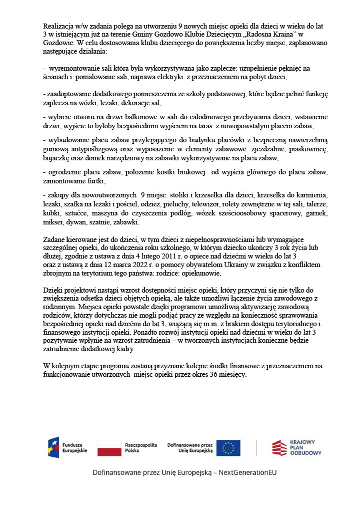 nowych miejsc opieki w Klubie Dziecięcym “Radosna