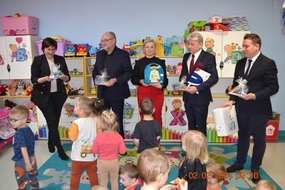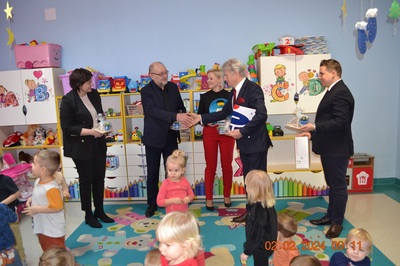 Taki zestaw w dniu 2 lutego 2024r. otrzymaliśmy i my z rąk pana Waldemara Młynarczyka Dyrektora Oddziału Banku PKO BP w Sierpcu. Wśród gości byli również pani Anna Braniecka Kierownik Zespołu Obsługi Klienta Oddział 1 w Sierpcu, pan Sebastian Kowalski Doradca Bankowości Osobistej Oddział 1 w Sierpcu oraz pan Dariusz Kalkowski Wójt Gminy Gozdowo.