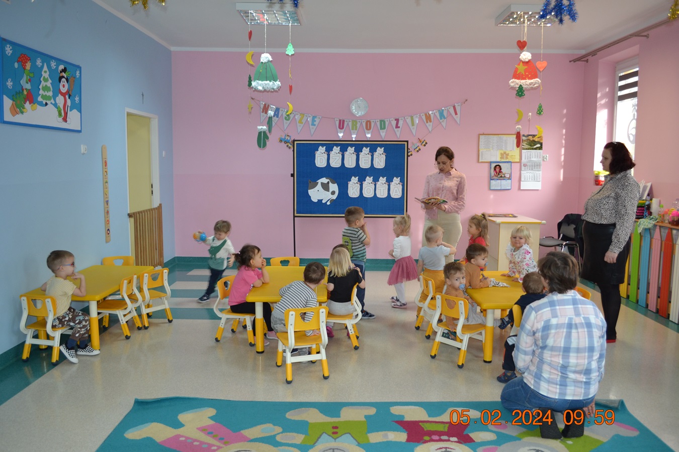 W tym dniu w sali działo się naprawdę wiele. Nasi podopieczni z zainteresowaniem oglądali ilustracje przedstawiające różne rasy kotów. Zapoznali się z kocimi obyczajami oraz sposobem pielęgnacji i opieki jakiej wymagają. Podczas zajęć były też wesołe “kocie zabawy” przy znanych piosenkach: “Uciekaj myszko”, “My jesteśmy kotki dwa”, “Wlazł kotek na płotek” czy “Kotek Puszek”.