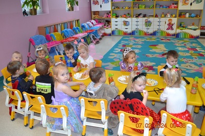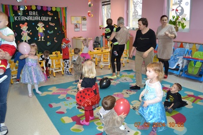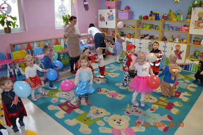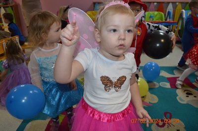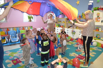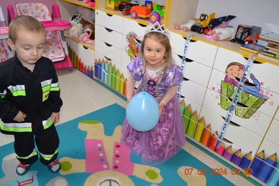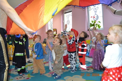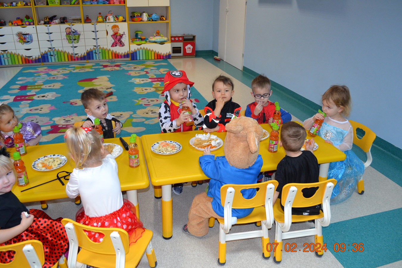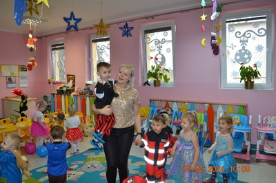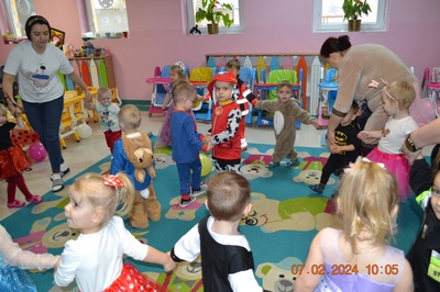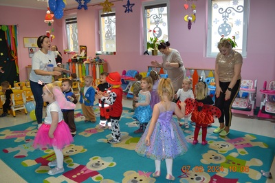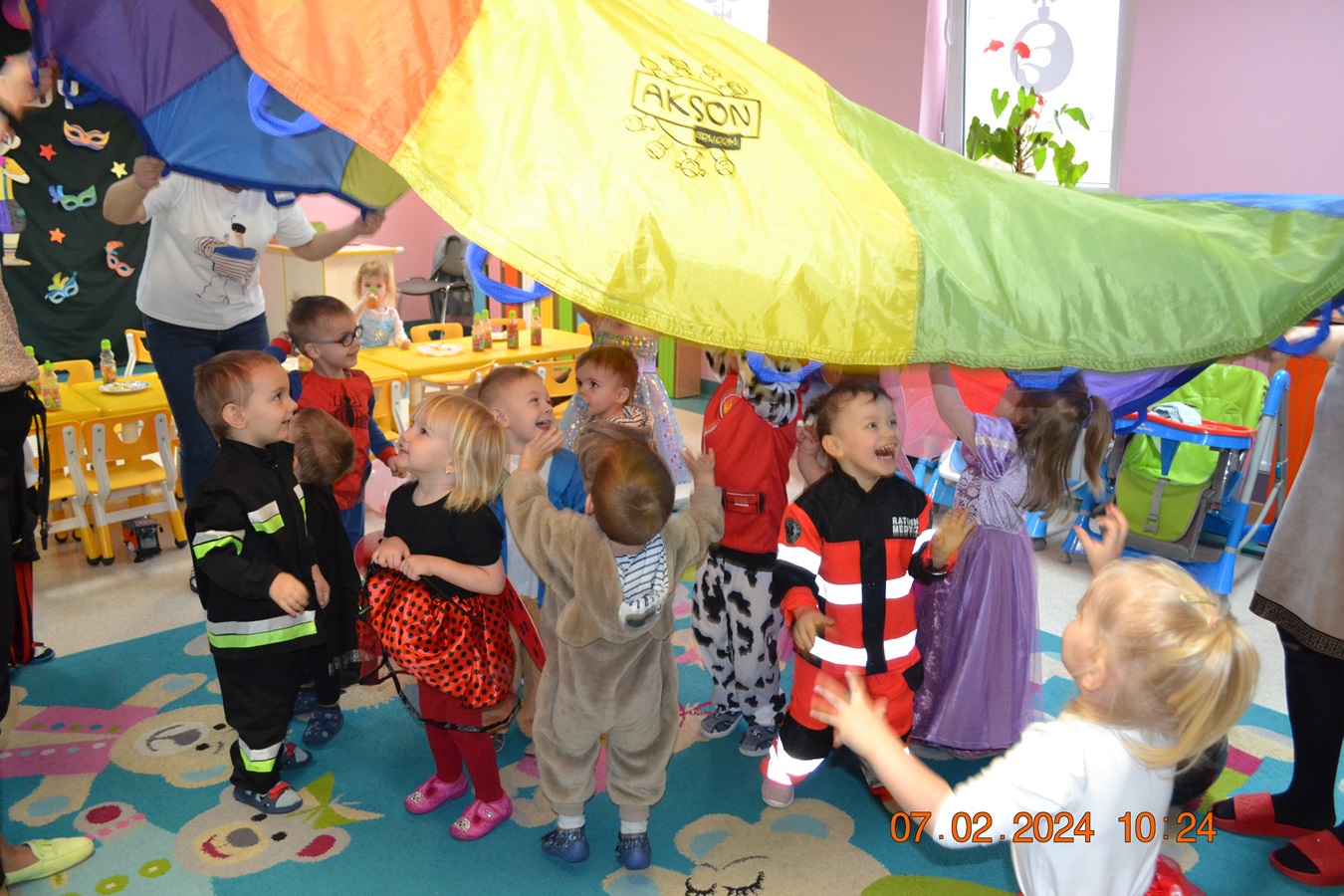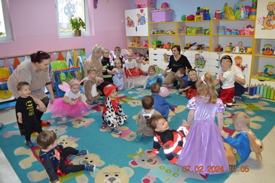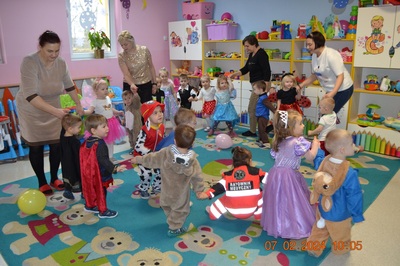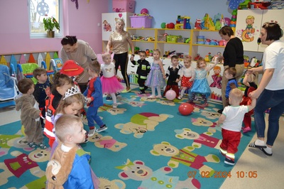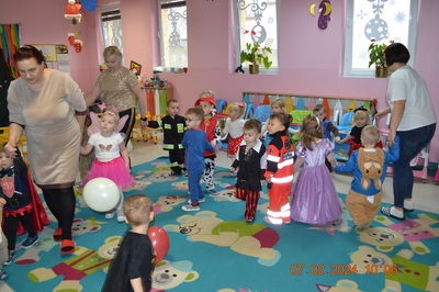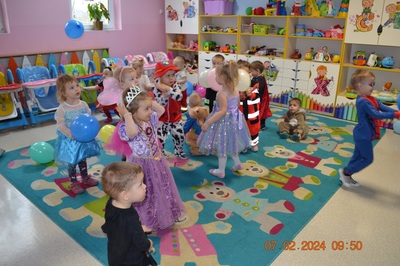 Wszystkie maluszki  z wielką ochotą brały udział w zabawach w rytm muzyki. Rozpoczęły się wesołe tańce i pląsy. Ciocie również zadbały o dodatkowe atrakcje. Dzięki temu maluszki świetnie się bawiły, rozwijały swoją wyobraźnię, kreatywność i umiejętności społeczne. Tego dnia milusińscy mogli przenieść się do świata swoich marzeń i poczuć się wyjątkowo, panował klimat beztroskiej zabawy.