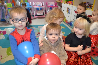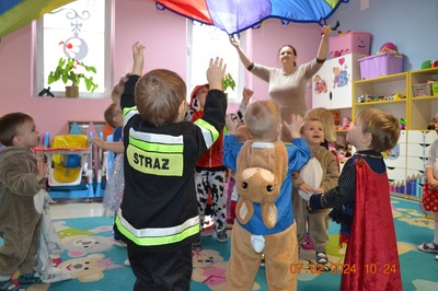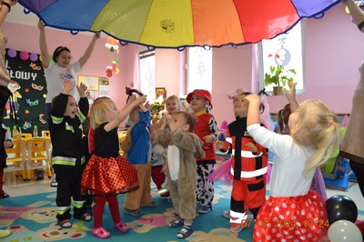 Nasi klubowicze od samego rana zaskakiwali niesamowitymi przebraniami. Swym wyglądem wzbudzali radość i zachwyt. Były tam małe księżniczki, superbohaterowie, postacie z ulubionych bajek, zwierzątka. Nie sposób wymienić wszystkich. Rozpoznać dzieci było trudno. Cały nasz  klubik zmienił się w magiczne królestwo dziecięcej wyobraźni.